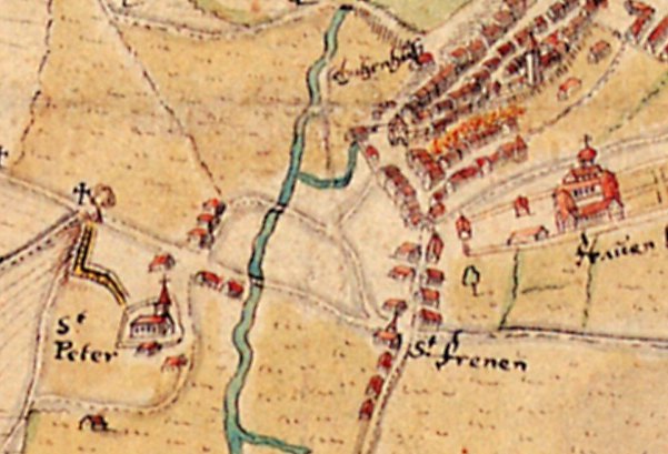 Das Wandbild Das Wandgemälde, das sich an der Ostseite befand, stellt den heiligen Bruder Klaus und den heiligen Karl Borromäus, (1538-1584), Kardinal und Erzbischof von Mailand vor dem Bildnis des gekreuzigten Christus dar. Umrahmt wird das von illusionistisch gestalteten Würfeln und Stangen. Der Künstler ist unbekannt. Der Verdacht, es könnte sich um den bekannten Maler Paul Deschwanden (1811-1881) aus Einsiedeln handeln, ist nicht ohne weiteres von der Hand zu weisen, hatte er doch guten Kontakt zu Pater Gall Morel (1803-1872), der sich als Enkel Josef Marin Morels oft in Wil aufhielt.