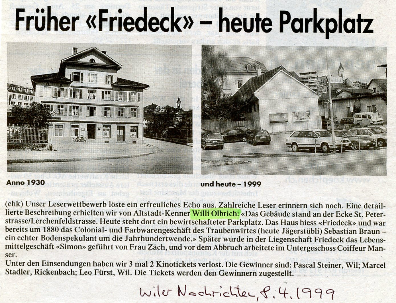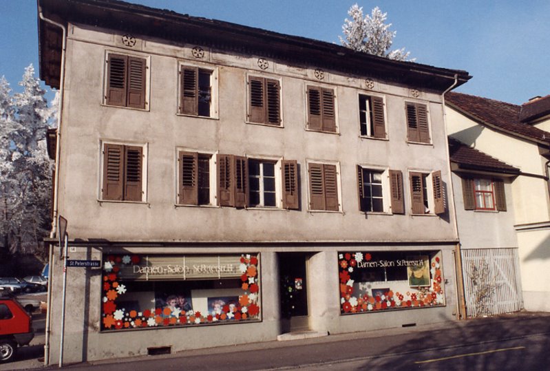 Das Haus Friedeck stand früher an der Ecke St. Peterstrasse - Lerchenfeldstrasse. Heute befindet sich dort ein Parkplatz.