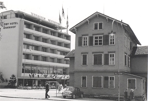 Als 1855 in Wil der erste Zug einfuhr, lag zwischen dem einfachen Stationshäuschen und den ersten Häusern stadteinwärts eine grosse Wiese. Ein Strässlein - die heutige Obere Bahnhofstrasse - verband damals Wilen und die Hub mit der Wiler Oberstadt. Um 1856 wurde an der Wiese ein stattliches Haus errichtet. Erbauer waren die in Wil bestens bekannten Müller aus Mosnang, die schon verschiedene andere Gebäude, vor allem Wirtschaften, in Auftrag gegeben hatten. In Anlehnung an das von ihnen 1835 aus dem Material des alten Mosnanger Schützenhauses erbaute Hotel "Schöntal" wurde die Wirtschaft "Neuschönthal" genannt. Als einer der ersten Wirte ist vor 1872 Johann Heinrich Oswald bekannt. In den folgenden Jahren entwickelte sich vor allem der Garten zumeigentlichen Anziehungspunkt. Jeweils gegen Ende Mai oder anfangs Juni wurde mit einem grossen Konzert die Gartenwirtschaft eröffnet. Musikgesellschaften aus dem ganzen Kantonsgebiet waren im Verlauf der Jahre zu hören, die Gartenwirtschaft zum "Neuschönthal" florierte.