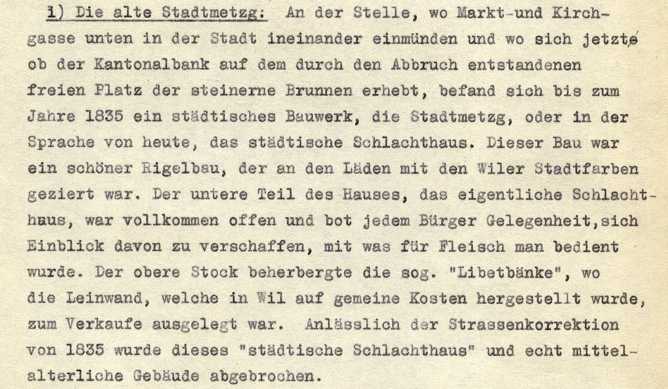 An die alte Stadt-Metzg beim heutigen Bären-Brunnen erinnert nur noch die Metzgergasse zwischen der Markt- und Kirchgasse.