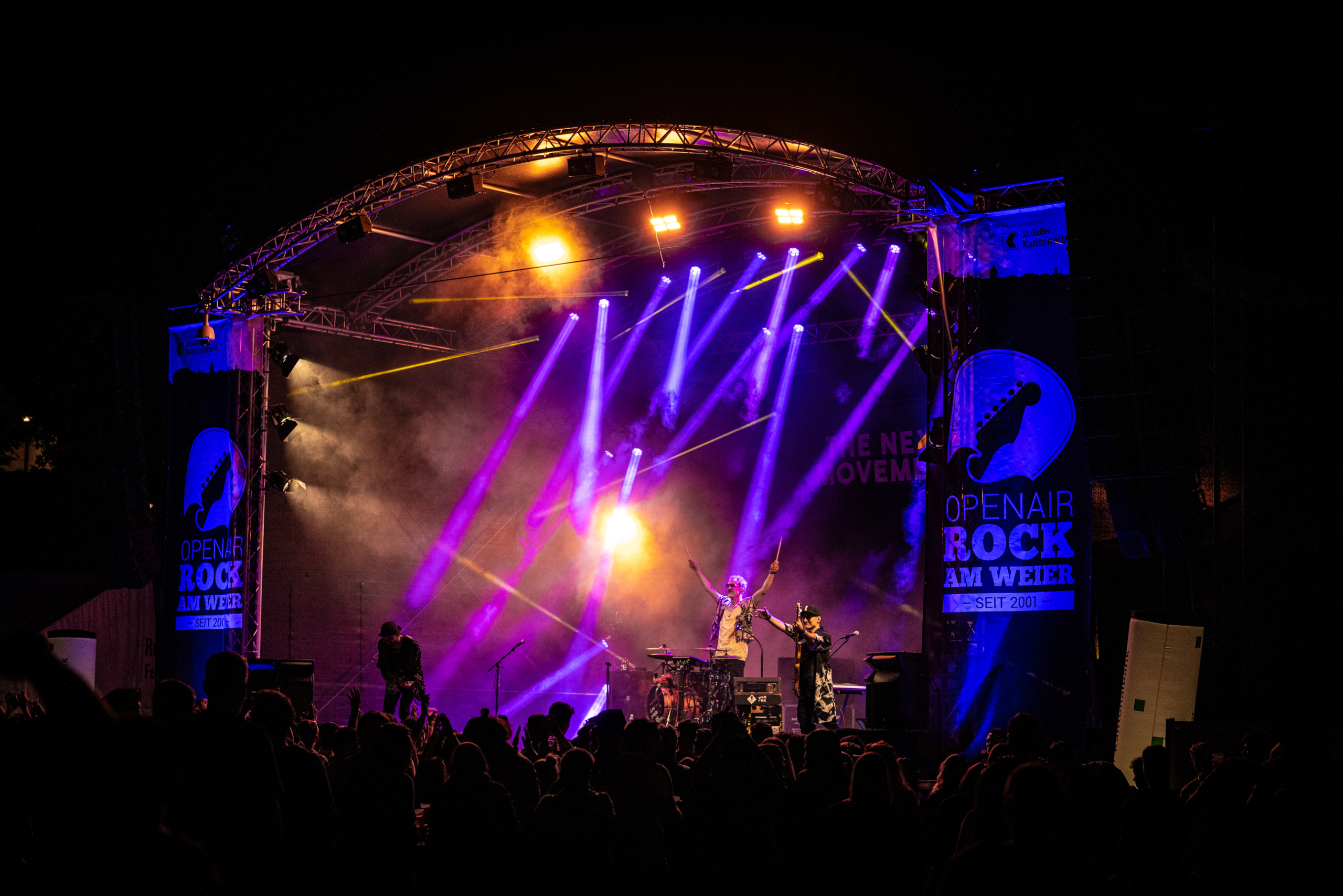Comeback und neue Rekorde (2022–2025) Die Rückkehr 2022 wurde zum Triumph. Beim 20. Jubiläum des rockamweier strömten über 22'000 Besucherinnen und Besucher auf die Weierwiese — ein neuer Rekord und ein eindrückliches Zeichen dafür, wie sehr das Festival in der Region verankert ist.