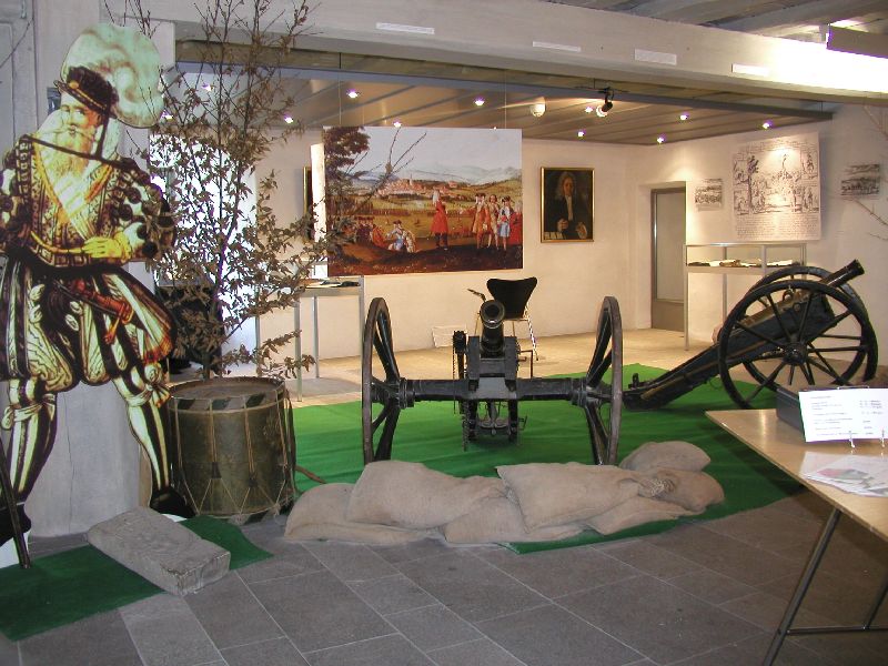 Ausstellung im 1. Halbjahr 2004 Das Stadtmuseum verfügt über einen Fundus von mehr als 2'600 Objekten. Die über 600 Ölbilder ab dem 16. Jahrhundert sind dabei ein zentraler Teil. In der nun offenen Sonderausstellung zur "Belagerung von Wil anno 1712" sind die Bilder aus der Zeit, weitere Objekte aus dem Museumsbestand und Dokumente aus dem Stadtarchiv gemeinsam zu sehen. www.stadtmuseum-wil.ch Die Belagerung Wil hat viele unruhige Zeiten erlebt und vor allem überlebt. Doch im Frühjahr 1712 schien es, als hätte das letzte Stündlein für die Einwohner und die Stadt geschlagen. Die jahrzehntelang schwelenden Konflikte zwischen der Freiheit und Unabhängigkeit suchenden protestantischen Bevölkerung des Toggenburgs und dem Abt von St. Gallen waren bis vor die Tore Wils gedrungen. Schon bevor einige tausend Zürcher und Berner Truppen, unterstützt von 2'000 Thurgauern und Toggenburgern vor Wil aufrückten, hatte Abt Leodegar Bürgisser in Wil eine Garnison von 2'500 Mann gelgegt, die umgehend an die Verteidigung gegangen waren. Bei Rickenbach und auf der Schabegg am Hofberg war schon im April ein Vorwerk mit Schützengraben errichtet worden. Der Friedhof von St. Peter wurde besonders stark befestigt und mit Geschützen bestückt, die Türme und Stadtmauern ausgebessert und die Toreingänge mit Palisaden versehen. Dabei vergass man aber den Wald im Anmarschgebiet Bergholz zu verschanzen und zu befestigen, was schlimme Folgen haben sollte.