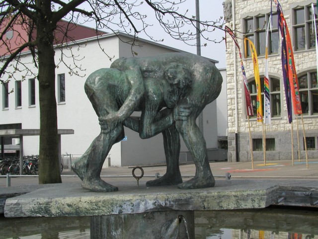 Urban Blank (1922 - ) Bereits als Kind war der 1922 in Wil geborene Urban Blank von Kunstwerken umgeben, in den Atelierräumen seines Vaters nämlich, des Mitinhabers der berühmten Altarbaufirma "Marmon und Blank". 1937 begann Urban eine Holzbildhauerlehre, nach der er sich beim Zürcher Bildhauer Alfons Magg weiter ausbildete. Studienreisen nach Rom liessen Blank erstmals mit der Antike in Berührung kommen. Bei der Rückkehr nach Wil hoffte er, als freischaffender Künstler leben zu können, wurde aber enttäuscht. Deshalb wanderte er 1956 nach Chile aus, wo er u.a. an der Schweizerschule unterrichtete. Ab 1974 lebte er wieder in Europa, zuerst in München, dann in der Schweiz, wo er u.a. für das Kinderdorf Pestlozzi tätig war. Heute lebt und arbeitet Urban Blank wieder in Santiago in Chile.