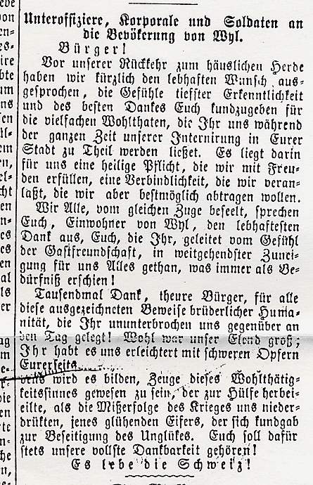 Die Aufgabe, welche die Schweizer Armee mit der Entwaffnung und Internierung der fremden, geschlagenen Armee zu bewältigen hatte, war heikel und mit der Lösung ausserst schwieriger logistischer Probleme verbunden. Diese wurden indessen mustergültig gelöst.