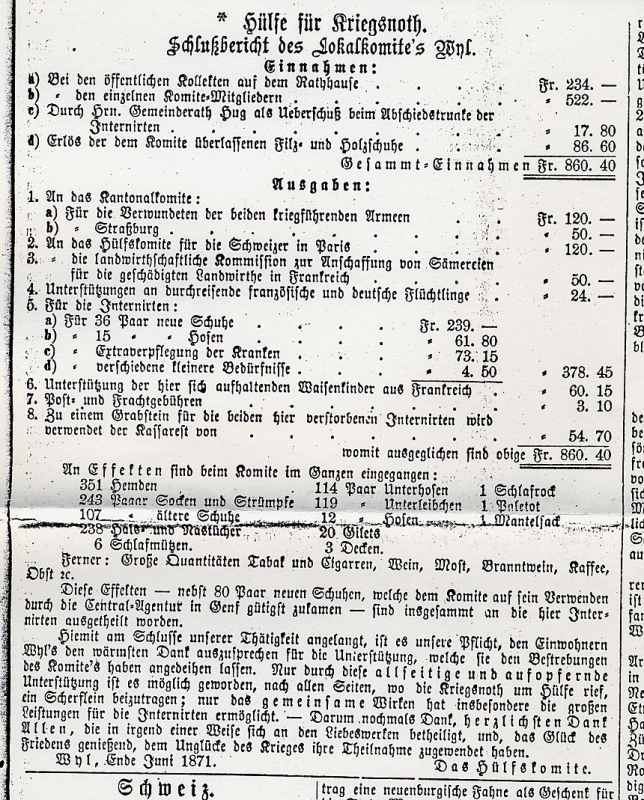 Bemerkenswert ist die Mitarbeit der Kantone und Gemeinden. Innert kürzester Zeit konnten in über 200 Gemeinden aus allen Kantonen (mit Ausnahme des Kantons Tessin) die französischen Armeeangehörigen zum vorübergehenden Aufenthalt und zur Pflege untergebracht werden.