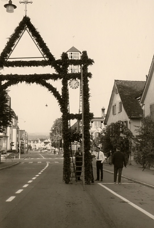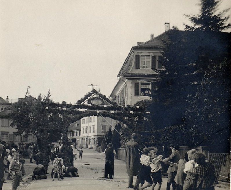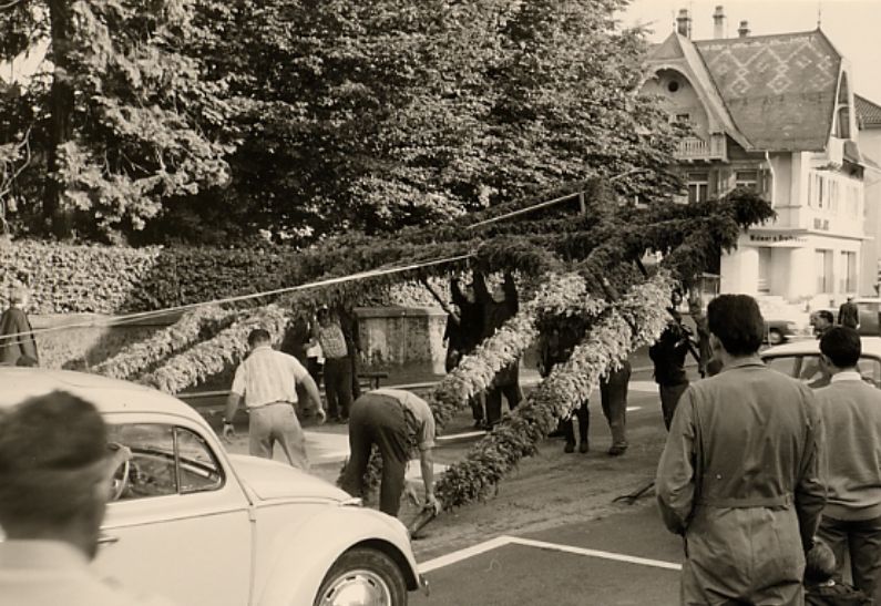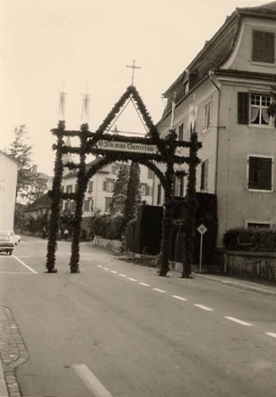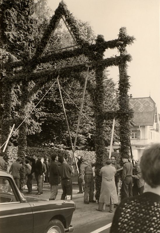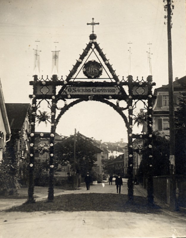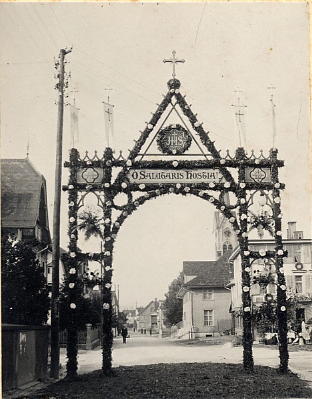 Neben den Altären wurden grosse Bogen über die Strassen errichtet. Die ganze Umzugsroute entlang richteten die Anwohner jedes Jahr reich geschmückte Laub- oder Tannenreisigbogen auf, die auf Holzunterkonstruktionen basierten, die dann verkleidet wurden.