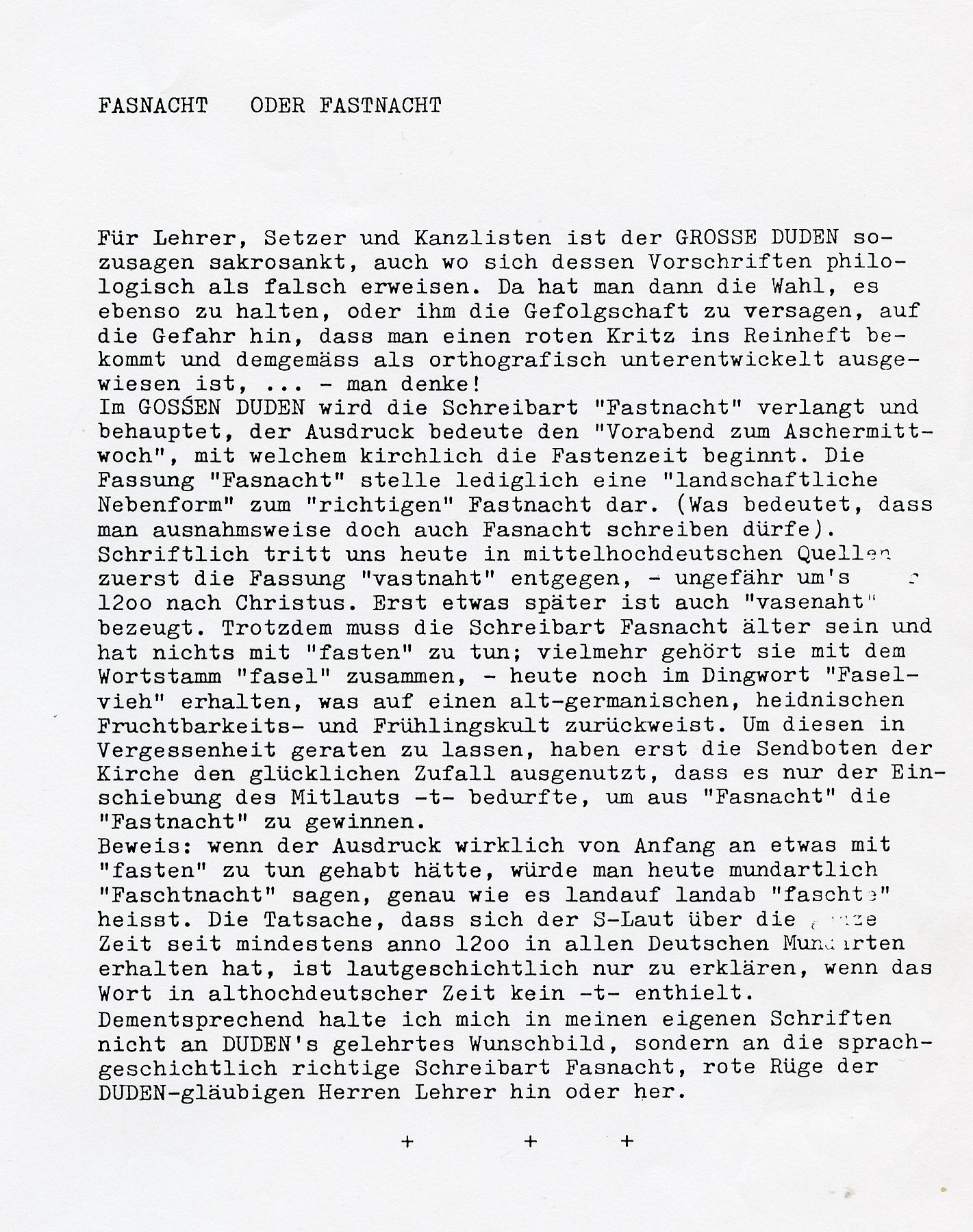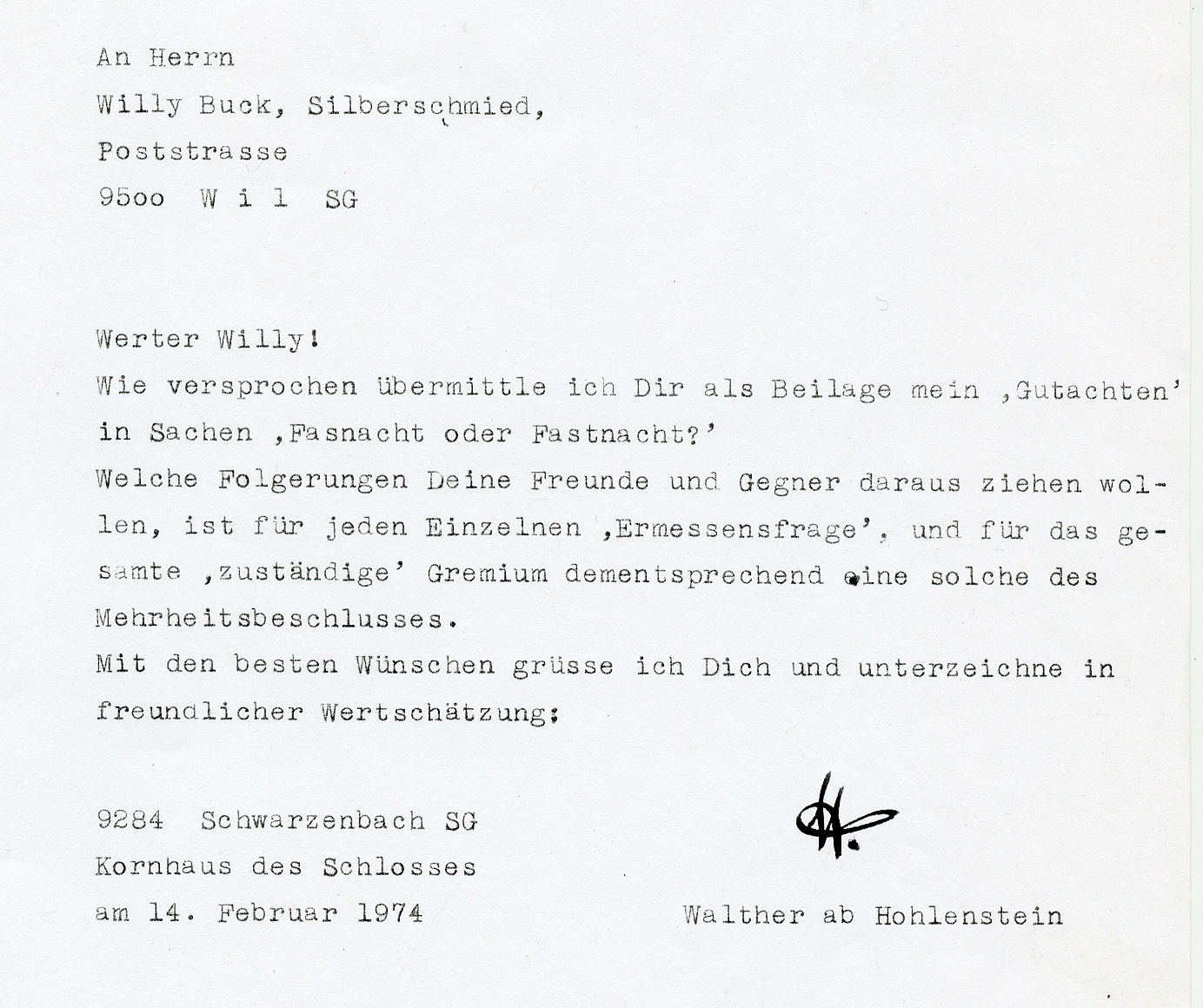 In Wil hat sich die 1950 gegründete Fastnachtsgesellschaft für das "t" im Namen entschieden und darum herrscht in Wil die "Fastnacht".