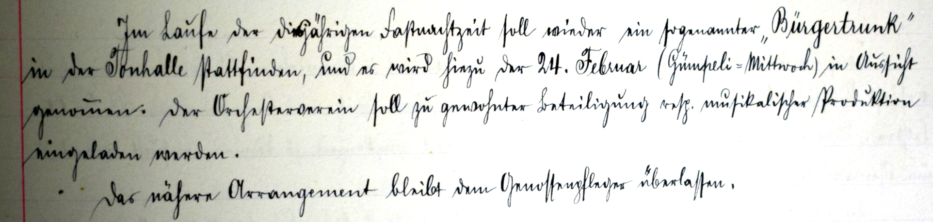 Wenn am "Gümpelimittwoch", also dem Mittwoch vor dem "Schmutzigen Donnerstag" die Wiler Fastnacht offiziell durch die Fastnachtsgesellschaft eröffnet wird, ist dieser Name auf die schon seit Jahrhunderten in Wil abgehaltenen "Bürgertrünke" der Ortsgemeinde Wil zurückzuführen. Diese konnten aber früher auch an anderen Tagen stattfinden. Erstmals als "Gümpeli-Mittwoch" wurde 1897 der Bürgertrunk bezeichnet.