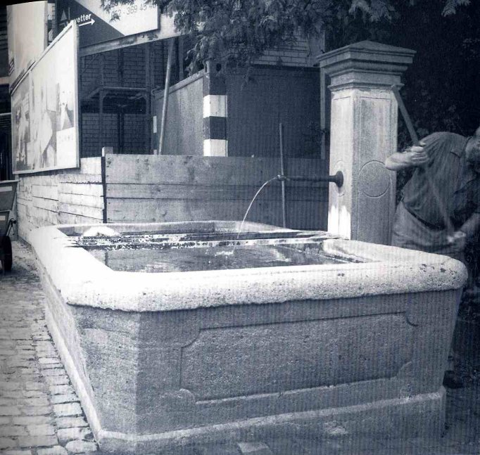 Im April 1844 wurde Zimmermeister Strübi beauftragt, an der St. Peterstrasse einen neuen Brunnen zu erstellen - zu dieser Zeit und angesichts seines Berufes wohl immer noch ein Holzbrunnen. Gleichzeit wurde der Anschluss an das bestehende Deuchelleitungsnetz vorgenommen, indem von der Hauptleitung auf dem Weierdamm ein Abzweiger in der Höhe der Oberen Mühle installiert wurde, der das Wasser ins Gebiet Bleicheplatz - Obere Bahnhofstrasse brachte, mit einer Verlängerung in die Gegend um St. Peter.