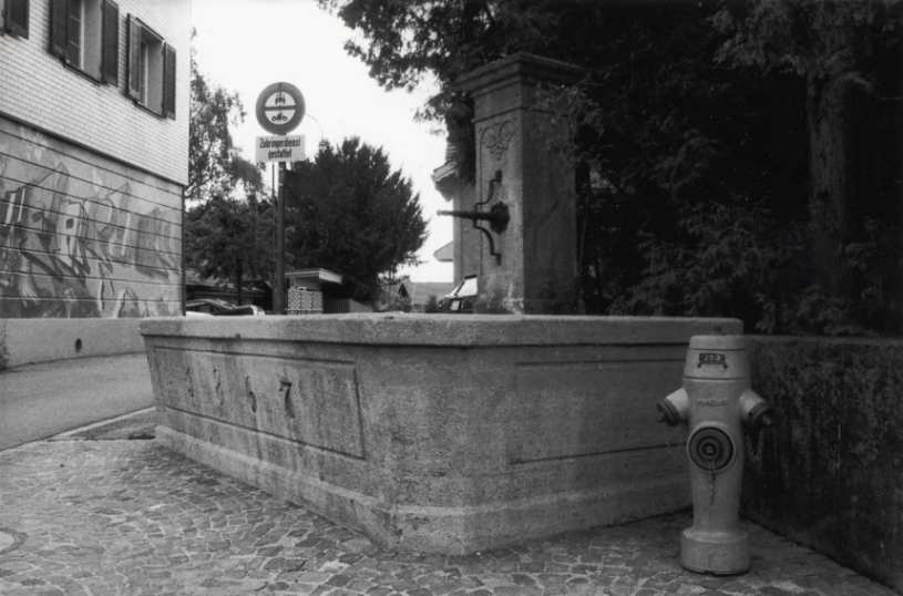 Der Gemeinderat mochte sich dazu noch nicht äussern und verschob einen Entscheid. Auf Drängen von Dr. Ellinger wurde anfangs Juni 1866 sein Anliegen erneut geprüft. Diesmal stellte sich der Gemeinderat auf den Standpunkt, dass es für die Gemeinde vorteilhafter wäre, wenn der Brunnenplatz in ihren Besitz überginge. Zudem würde ein neuer Brunnen vermehrt neue Nutzer des Wassers anziehen, was bei einem Privatbrunnen Probleme mit sich brächte. In diesem Sinne wurde Dr. Ellinger angefragt, ob er den Boden der Gemeinde abtreten wolle. Als Gegenleistungen wurde das bereits erwähnte Baurecht bis an die Umfassungsmauer eingeräumt und das Recht, allfälliges Regenwasser von einem Dach durch einen Kennel auf Gemeindeboden leiten zu lassen. Als Entschädigung für die Bodenabtretung solle Dr. Ellinger das Brunnenwasser für sechs Jahre unentgeltlich überlassen werden. Dies scheinen überzeugende Argumente gewesen zu sein, der Brunnen wurde gebaut, die eingemeisselte Jahrzahl 1867 bestätigt nachträglich das Einverständnis. Wie richtig Dr. Ellinger die Situation schon früher einschätzte, zeigte sich bereits 1869, als die Mauer hinter dem Brunnen infolge "Wasser-Missbrauchs" schon schadhaft geworden war. In seiner Klage stützte er sich denn auch auf die bereits 1866 verlangte Unterhaltspflicht durch die Gemeinde, worauf diese die Instandstellung auf eigene Kosten vornehmen liess.