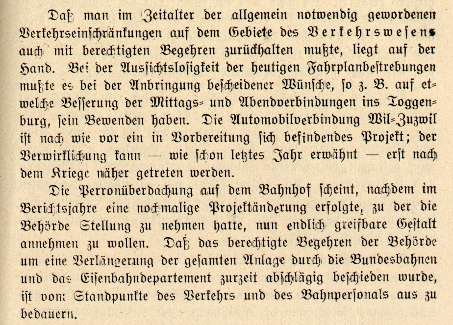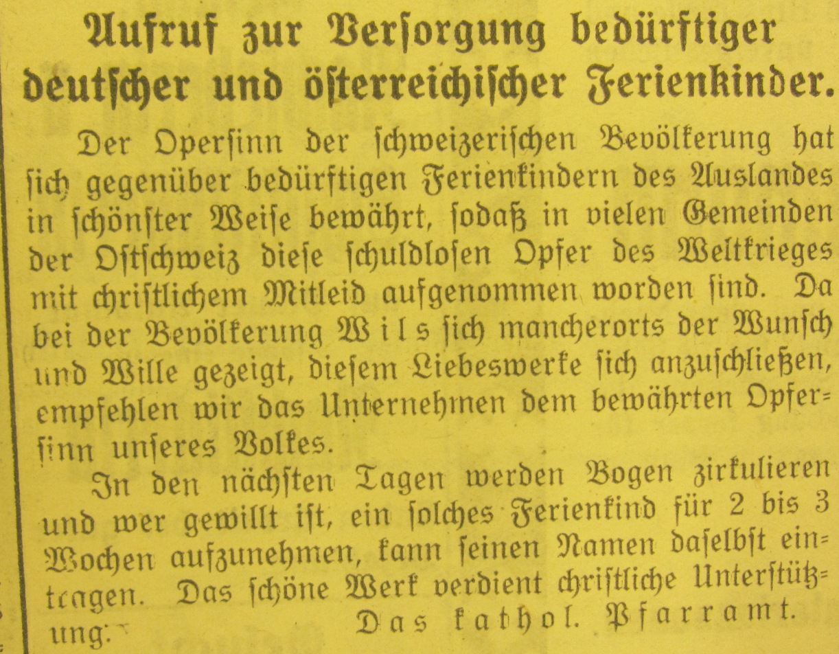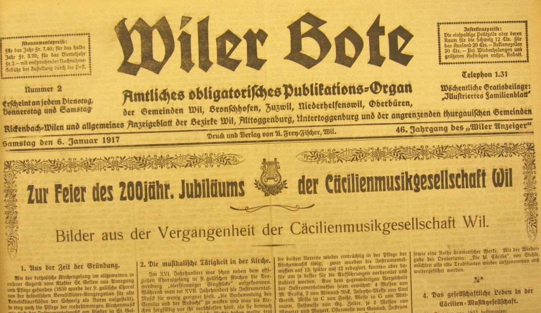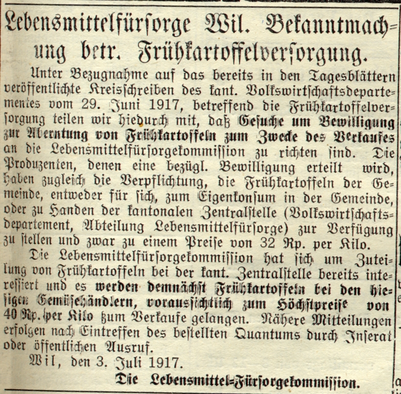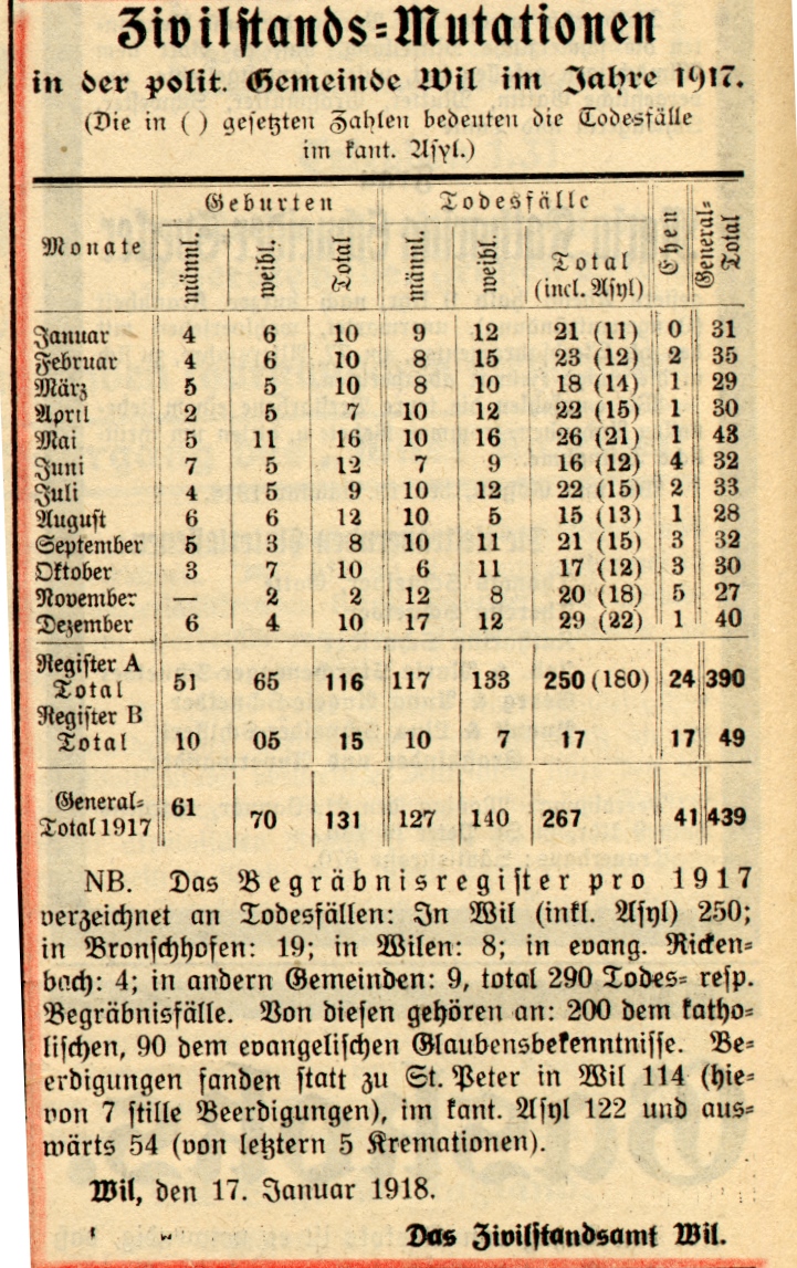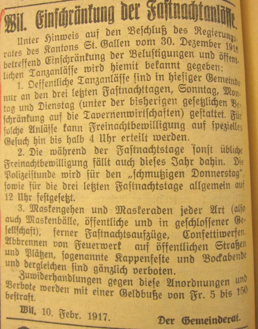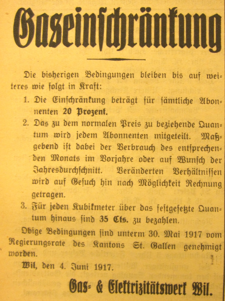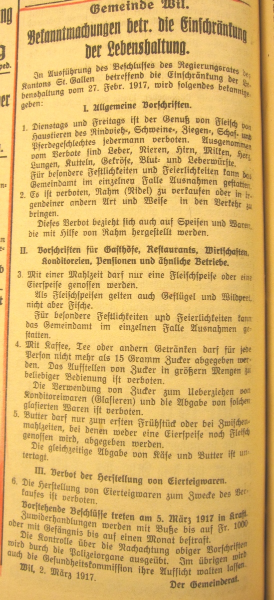 Das zweitletzte Jahr des ersten Weltkrieges hat auch in Wil Spuren hinterlassen. Anlässlich eines Vortrages an der Volkshochschule Wil wurden Dokumente, vor allem Zeitungsausschnitte, im Zusammenhang gezeigt.