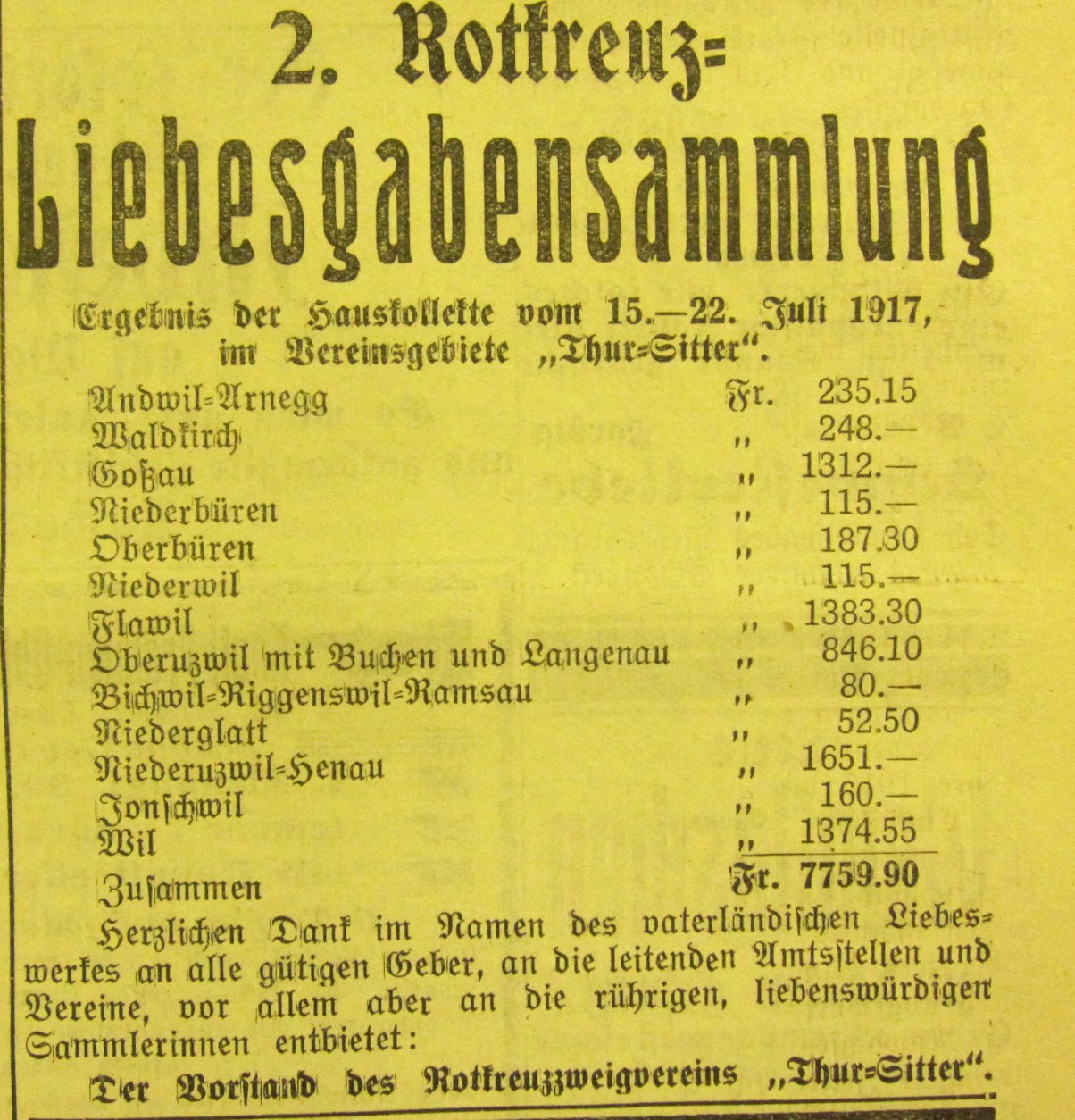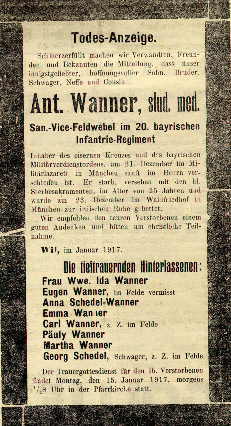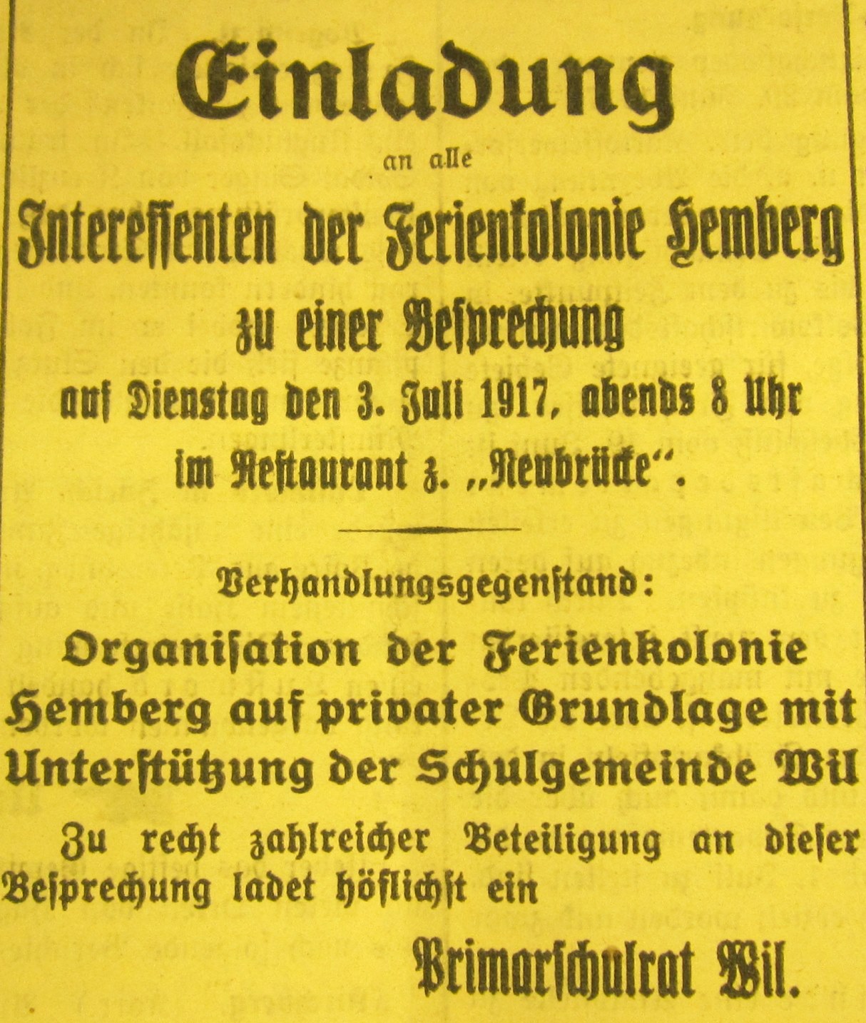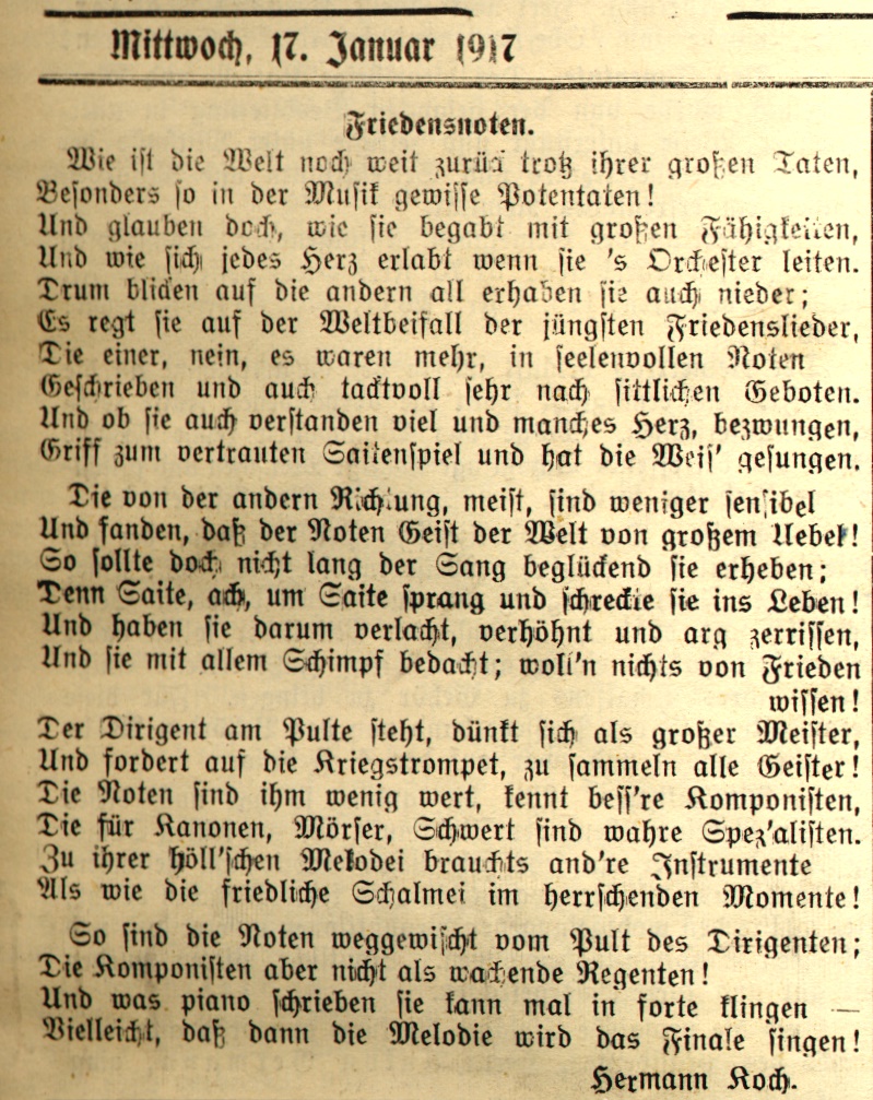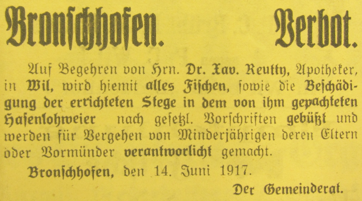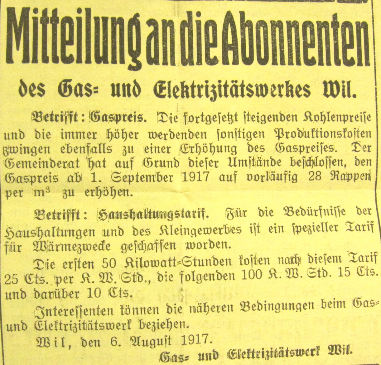 Das zweitletzte Jahr des ersten Weltkrieges hat auch in Wil Spuren hinterlassen. Anlässlich eines Vortrages an der Volkshochschule Wil wurden Dokumente, vor allem Zeitungsausschnitte, im Zusammenhang gezeigt.