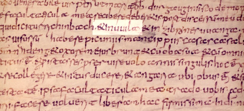 Domno sancto in Christo venerabile vir patri Autmaro abbati Durgauginsi seo de monasterio sancti Galloni. Ego Rothpaldus donamus ad monastirio vestrum pro mercede anime me facultaticula mea recibere deberetis post discessum meum; dono vobis dona- tumque in perpertuo ut permaneat esse volo, hoc est in pago Duregaugensi, in villa, qui dicitur Richinbach, et in Wila et in Zibroneswanga et in Wangas et in Tuzzinwang et in Schlatte et in Puzzinberch et in Wanzincovo, quicquid in istas villas visus sum abere picuniis, mancippiis, casas, caslis, campis, pratis, silvis, aquis aquarumque decursibus, ....