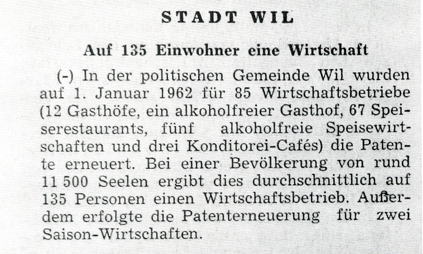 Altes Wil, das Gastgewerbe in früherer Zeit