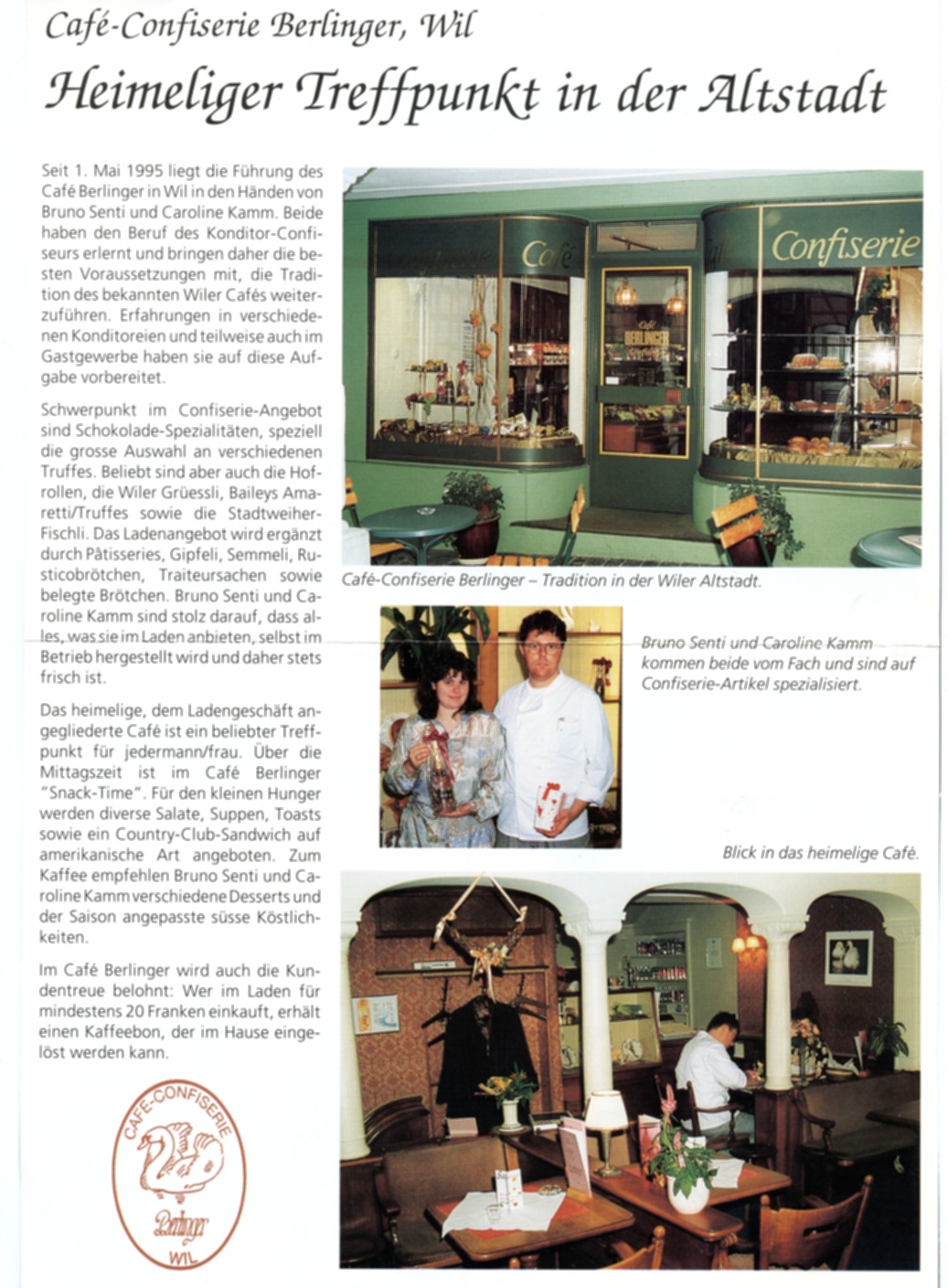 Das "Haus Idtensohn" blieb in den Händen der Familie bis 1937. Am 28. Januar 1938 übernahm der junge Konditor Konrad Berlinger aus Degersheim den Betrieb und nannte ihn neu "Café Berlinger". Als er das Cafe kaufte, war im ersten Stock noch eine Wohnung und im Geschäft nur ein Tischchen mit drei Stühlen. Berlinger liess oben zum Cafe ausbauen und zum Glück die schöne Decke restaurieren, anstatt sie, wie vorgesehen, herunter zu reissen. Im Jahr 1983 trat Konrad Berlinger in den wohlverdienten Ruhestand und übergab den Betrieb an Kurt Koller, der nun das traditionsreiche "Café Berlinger" weiterführte.