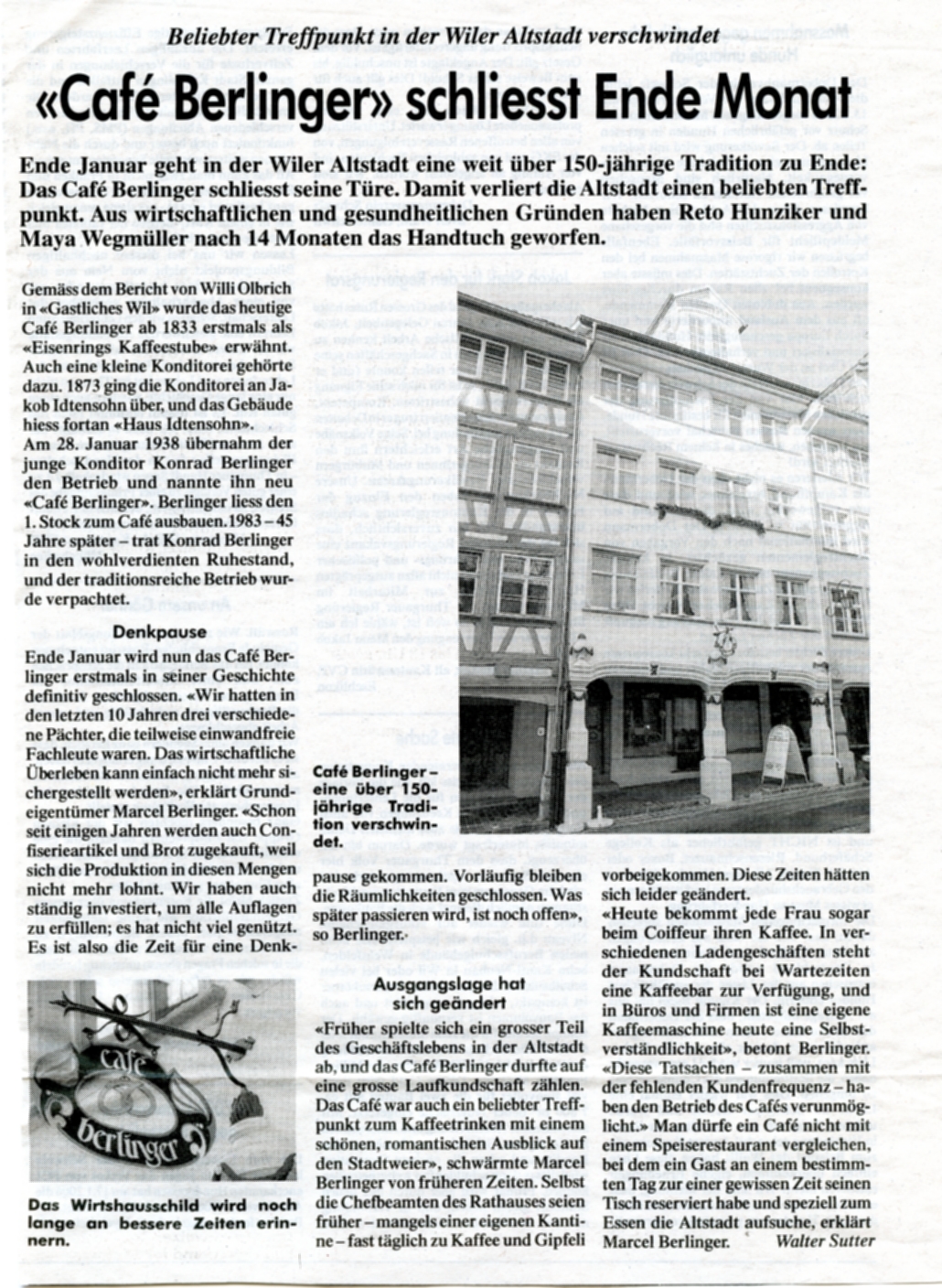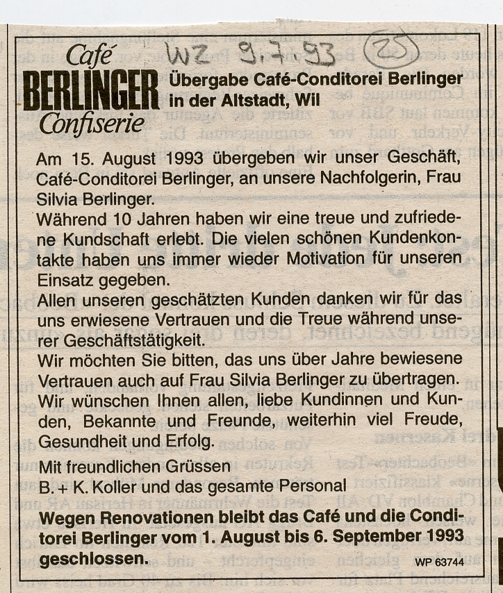 (Olbrich, Willi; Gastliches Wil, Wil 1989) Das "Berlinger" ist seit einigen Jahren geschlossen.