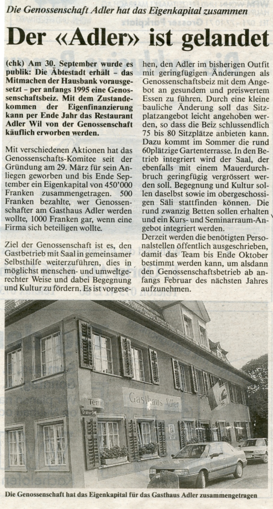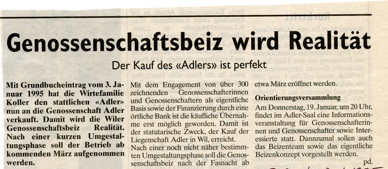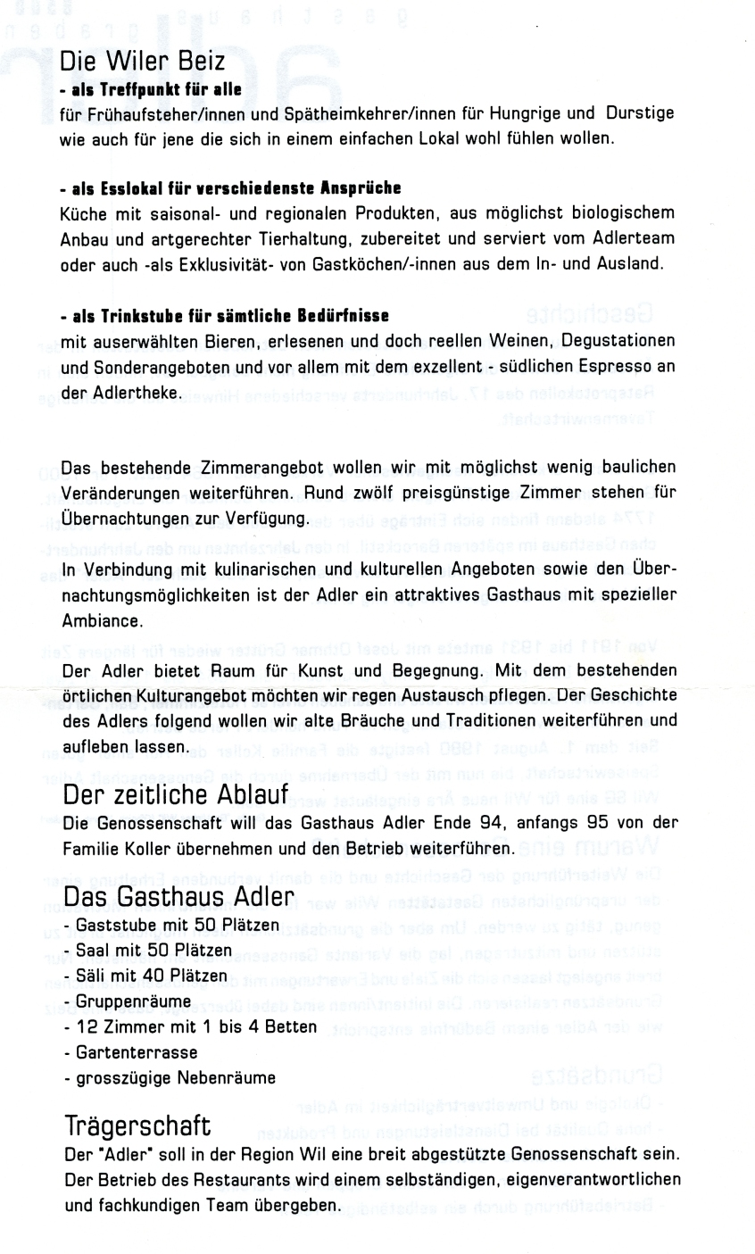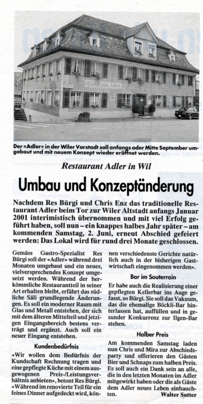 (Olbrich, Willi, Gastliches Wil, Wil 1989). https://www.tagblatt.ch/ostschweiz/wil/wo-die-marktfahrer-residierten-ld.598241 Nach einigen Pächterwechseln bietet der Adler heute unter dem neuen Namen "L'Olivier" orientalische und mediterrane Küche an. restaurant-lolivier.ch