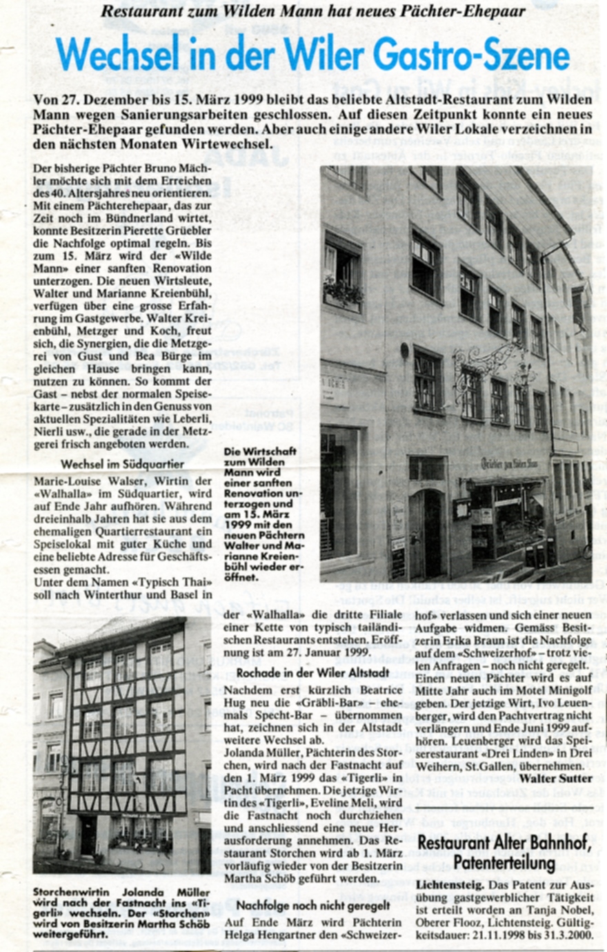 (Olbrich, Willi; Gastliches Wil, Wil 1989) Heute ist der "Wilde Mann" die Tapas-Bar "El Pincho". https://www.elpincho.ch/