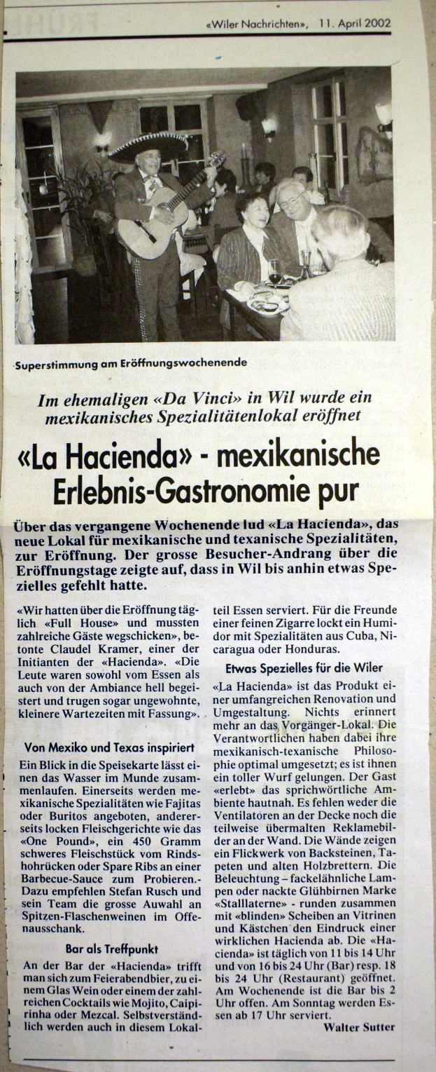 (Olbrich, Willi; Gastliches Wil, Wil 1989) Einige Jahre lang wurde der Hirschen als mexikanisches Restaurant "Hazienda" geführt. Aktuell ist er geschlossen.