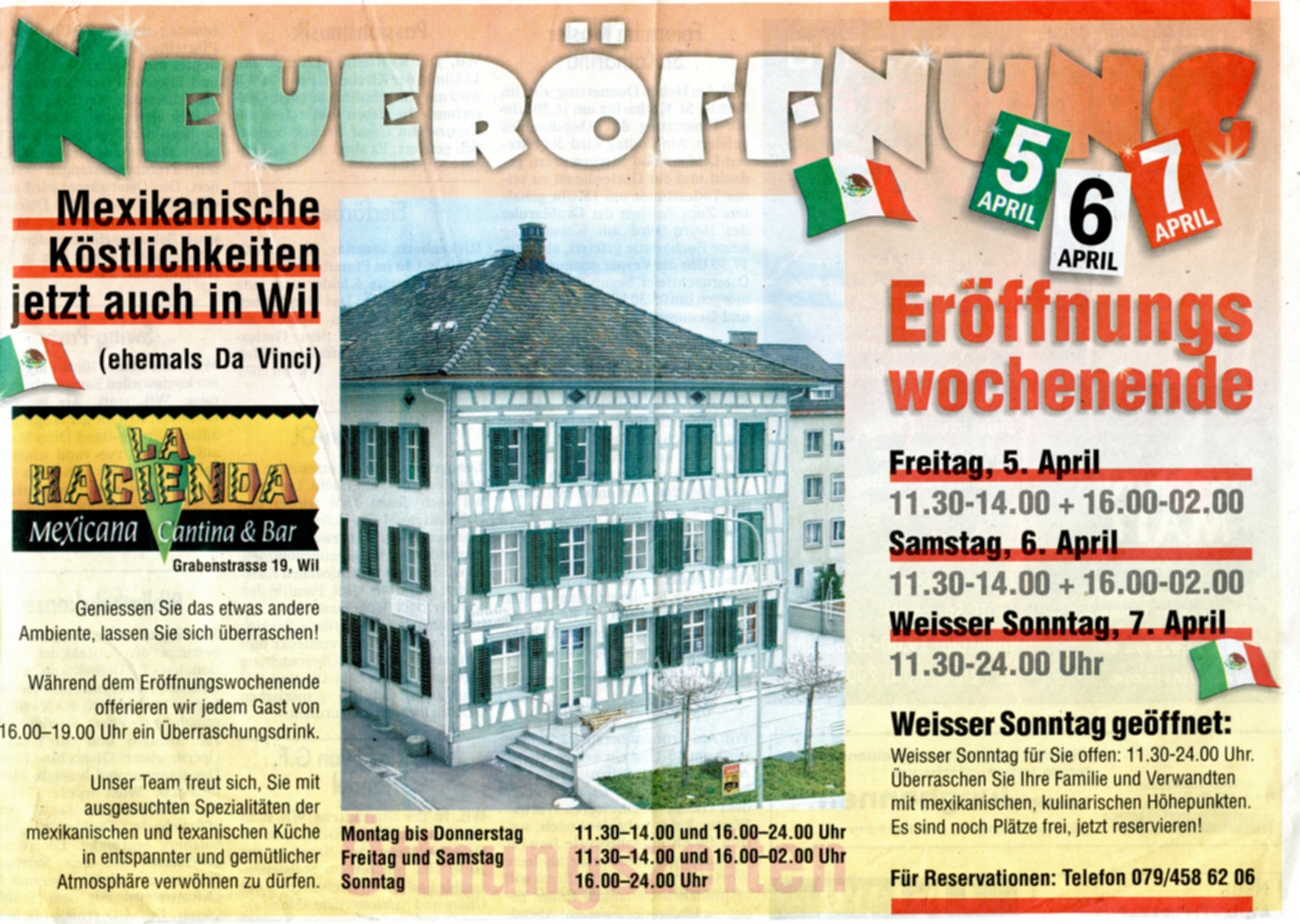 Wer sich heute, vor allem als "Nichtwiler", im Ristorante "Da Vinci" mit italienischen Spezialitäten verwöhnen lässt, ahnt wohl kaum, dass bis vor kurzer Zeit dieses Restaurant unter dem Namen "Hirschen" bestens bekannt war. Nachdem 1849 der ehemalige Viehmarktplatz beim "Adler" auf den heutigen Standort verlegt worden war, entstand bereits ein Jahr später ein neues Gasthaus am oberen Graben - eben der "Hirschen". Der Ort war gut gewählt, da Wil als Marktort regen Zulauf aus der ganzen Region erhielt und auch heute noch als Einkaufszentrum gilt. Als Baumeister und erster Wirt des "Hirschen" ist Niklaus Braun überliefert. Sein Nachfolger wurde 1863 der bekannte Weinhändler Johannes Wirz. Bei der Versteigerung des ganzen Liegenschaftsbesitzes der Wirtsfamilie Wirz anno 1902, wurde das Gasthaus auf Fr. 33'500.-veranschlagt, damals eine sehr respektable Summe.