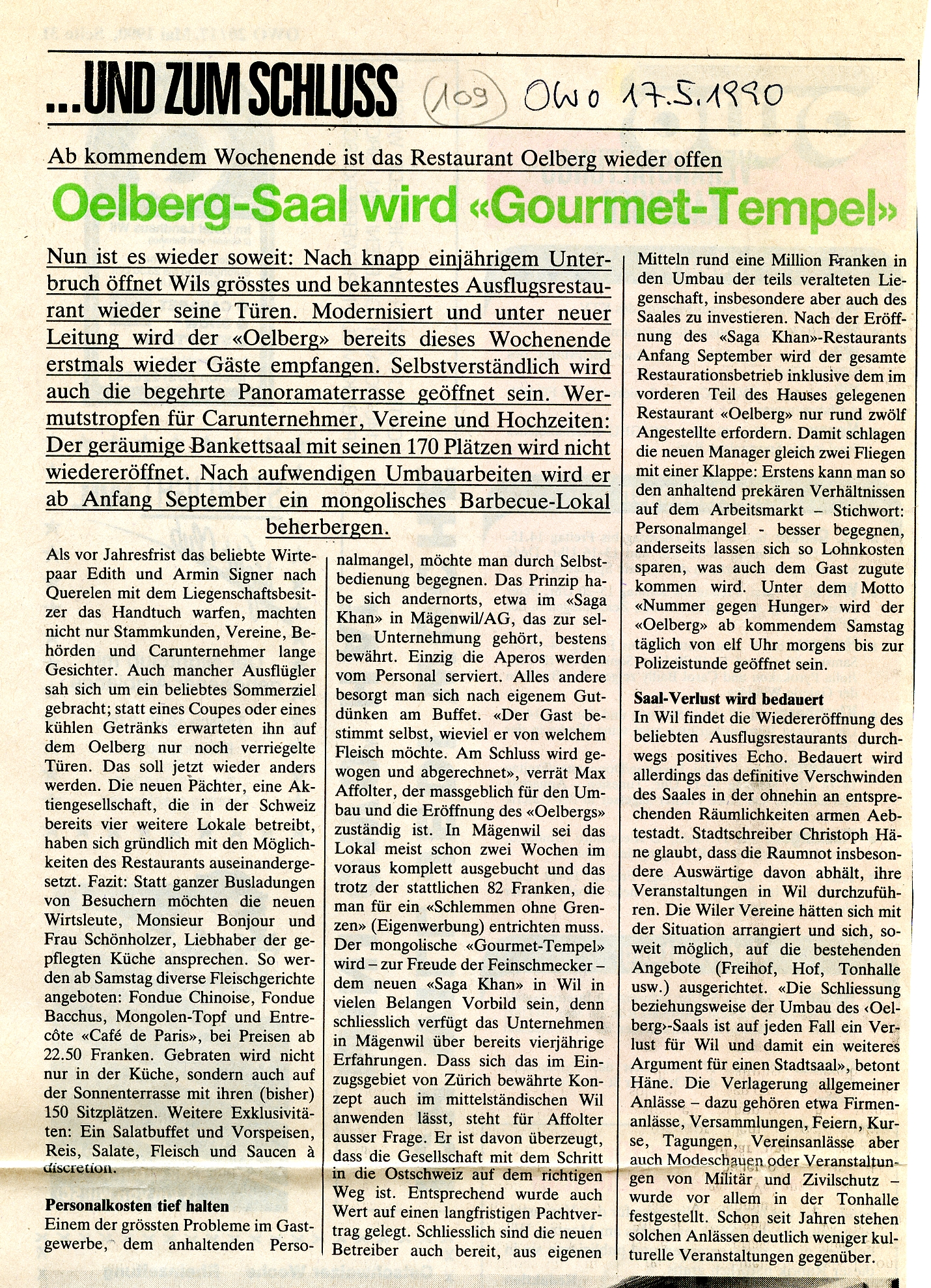 (Olbrich, Willi; Gastliches Wil, Wil 1989) 2008 wurde der "Oelberg" abgebrochen.