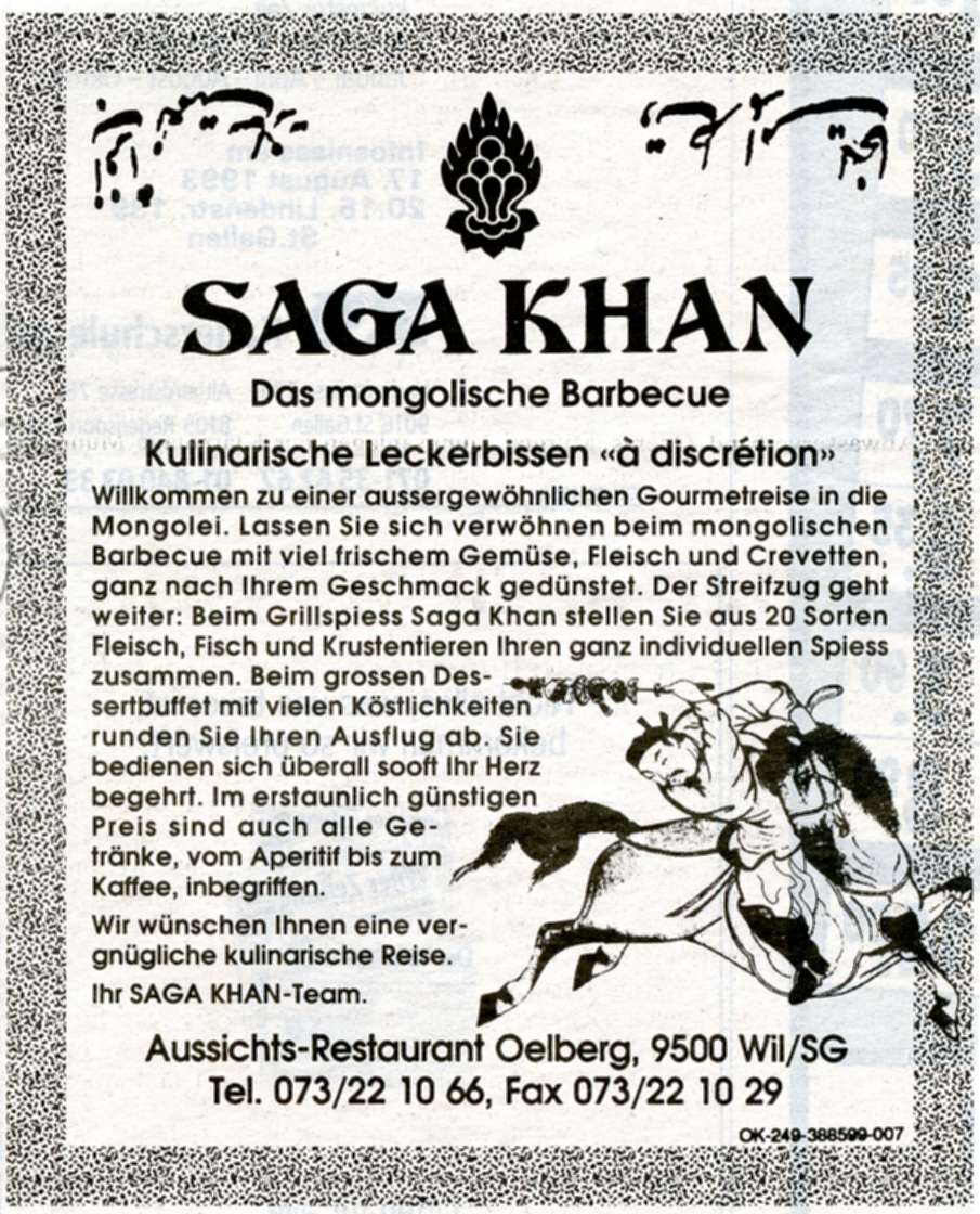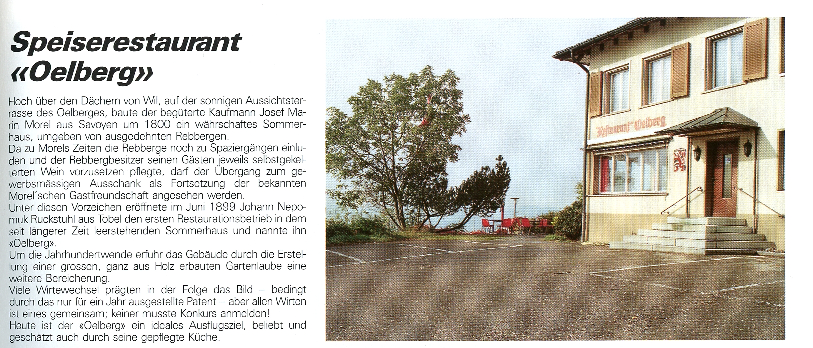 Am 16. Juni 1899 eröffnete Johann Nepomuk Ruckstuhl aus Tobel das Sommerrestaurant "Ölberg". Das längere Zeit leerstehende Sommerhaus war dazu umgerüstet worden, das Saisonpatent erlaubte nur, dass von Ende März bis Ende Oktober gewirtet werden durfte.