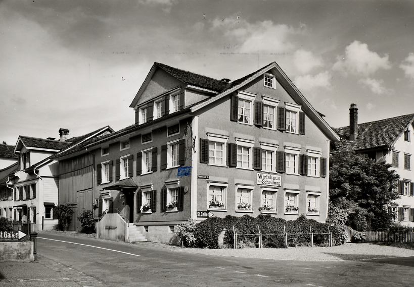 Wil dehnte sich im Verlaufe der Zeit nach allen Richtungen aus. Den Mittelpunkt bildete die Altstadt, der sich die "Untere" und "Obere" Vorstadt zugesellten. Die Konstanzerstrasse bildet dabei das konstruktive Element der Obervorstadt. Es verwundert deshalb nicht, dass an dieser belebten Strasse einige Wirtschaften entstanden. Gegenüber dem "Pfauen", im Spitz zwischen der Konstanzerstrasse und der Neulandenstrasse verkaufte anno 1872 Gallus Pankraz Wick sein Haus an Jakob Kuhn. Dieser richtete darin die Wirtschaft "Zum Scheidweg" ein.