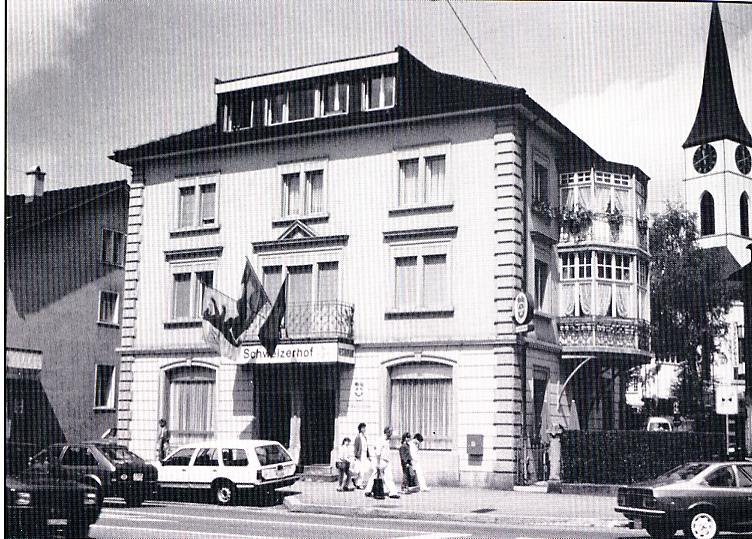 Seit 1930 - damals übernahm Ida Meier die Wirtschaft -, ist der "Schweizerhof" im Besitz der gleichen Familie. Jeweils zur Fastnachtszeit herrscht Hochbetrieb im Gastraum, und das Nebenstübli, wo sonst der Schachklub Wil seine "friedlichen Kämpfe" durchführt, wird zur beliebten Bar.