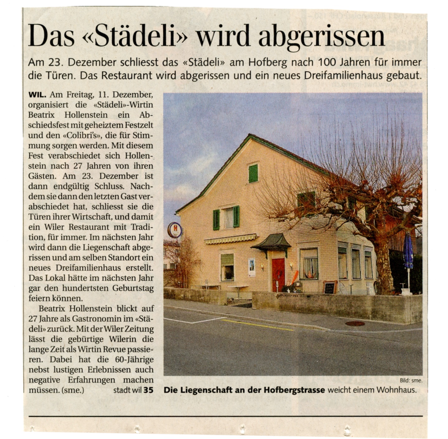 (Olbrich, Willi; Gastliches Wil, Wil 1989) Vor ein paar Jahren wurde das Städeli abgebrochen, an seiner Stelle steht ein Wohnhaus.