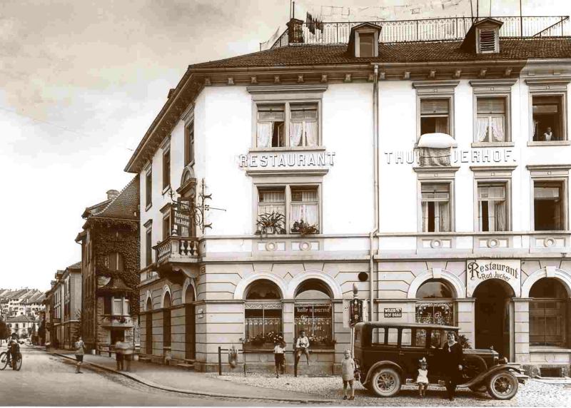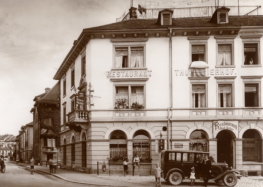 Am 1. Oktober 1903 konnte Josef Brunner zu ebener Erde die Speisewirtschaft mit Gastgarten zum "Thurgauerhof" eröffnen. Zugleich empfahl er sein separates Gesellschaftzimmer. In der Folge wurde die Wirtschaft auch kurz als "Bierhalle" bezeichnet.