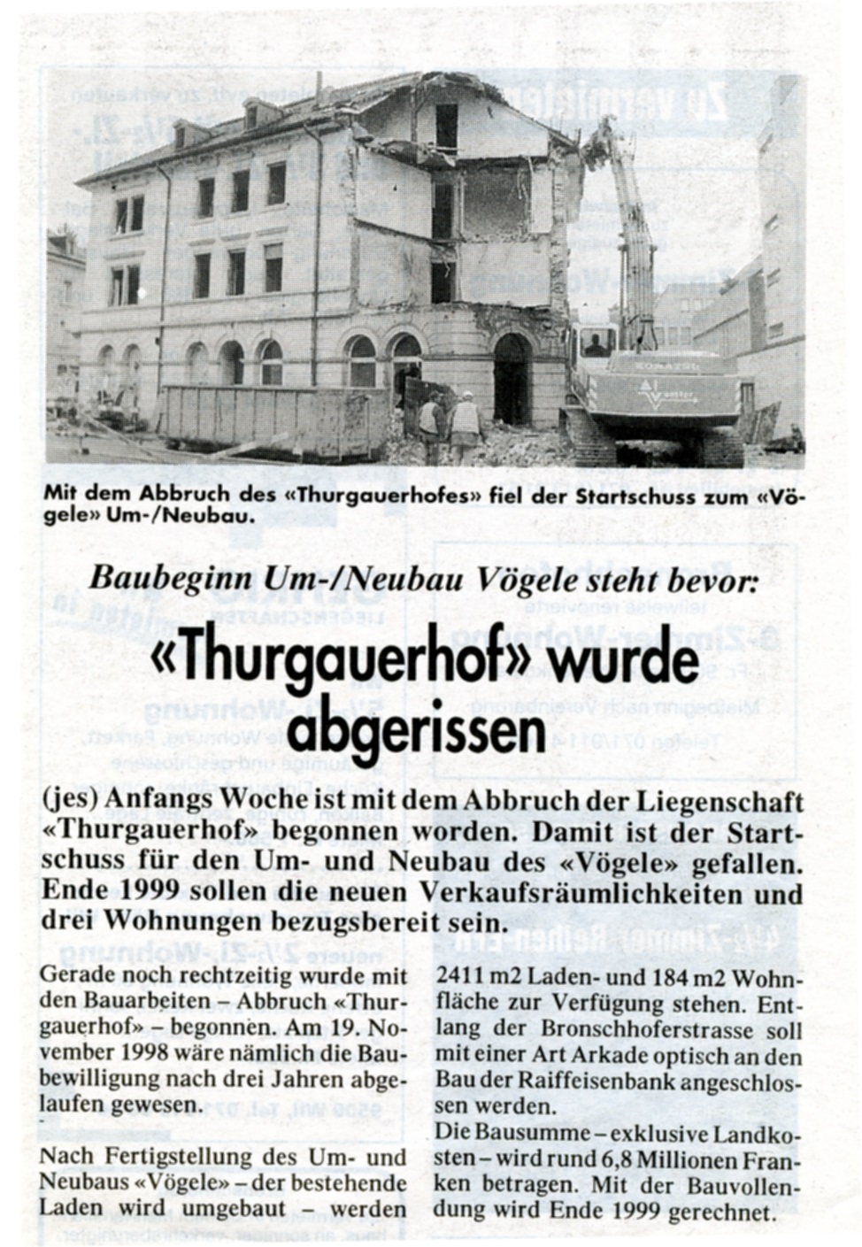 Die Liegenschaft "Thurgauerhof" wurde zugunsten einer Überbauung abgerissen.