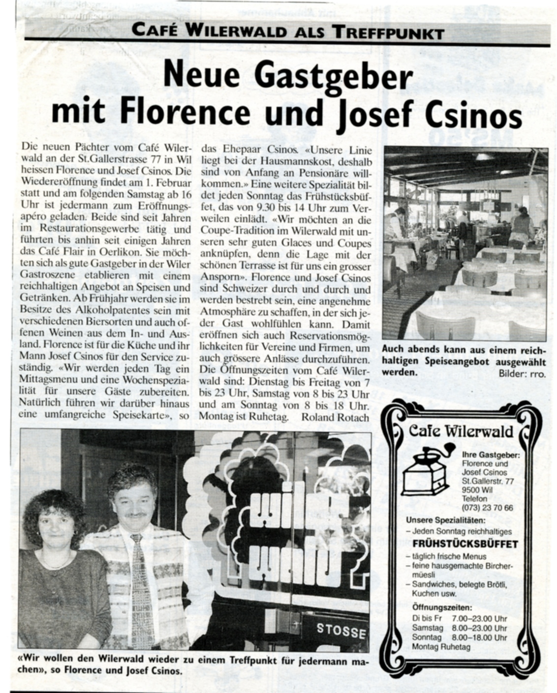An den vielbefahrenen Strassen hat sich in den letzten Jahren eine eigene Gastronomie entwickelt. Einerseits sind die Autobahnrestaurants in Mode gekommen, andererseits Motels an Ausfahrtsstrassen. An den Tankstellen finden sich vielfach Imbissecken oder eigentliche Cafés. So auch an der St. Gallerstrasse 77, vis ä vis dem Motel "Minigolf". Am 1. September 1973 öffnete dort das Speiserestaurant und Café "Wiler Wald", auch "Toni-Bar" genannt, seine Pforten. In der Nähe einer Tankstelle mit Autowaschanlage gelegen, wird der "Wiler Wald" gerne von den Durchreisenden besucht.