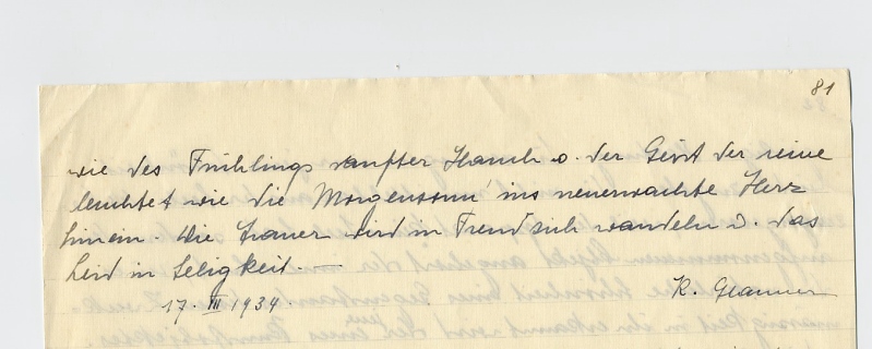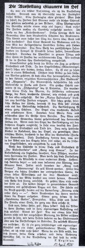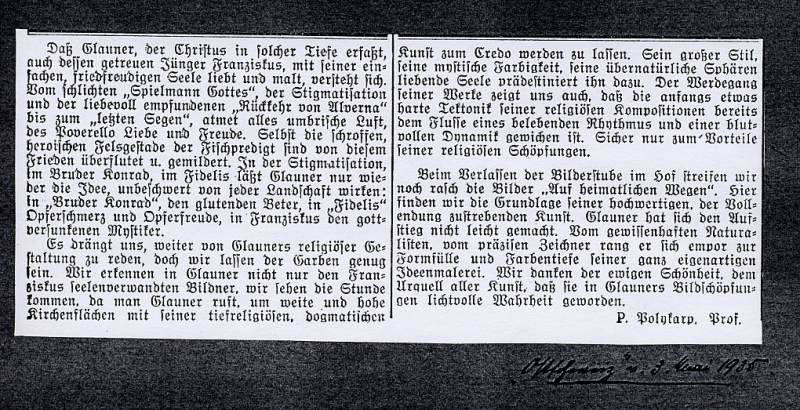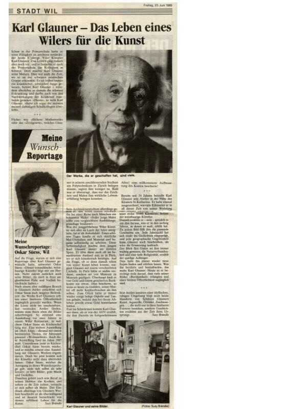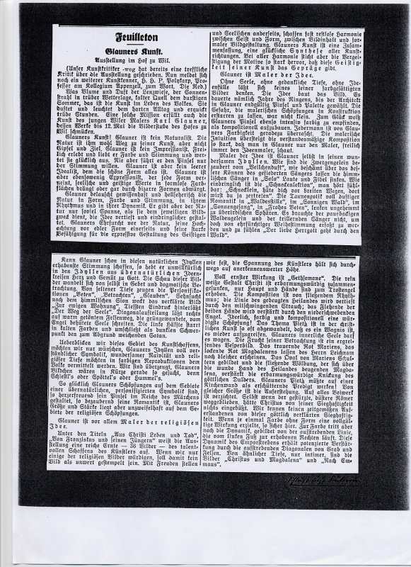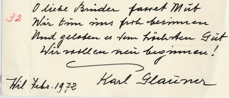 Am 18. April 2000 ist Karl Glauner nach einem bewegten Leben, das er ganz seinem Glauben, seiner Kunst und seiner Freiheit gewidmet hatte, ruhig für immer eingeschlafen.