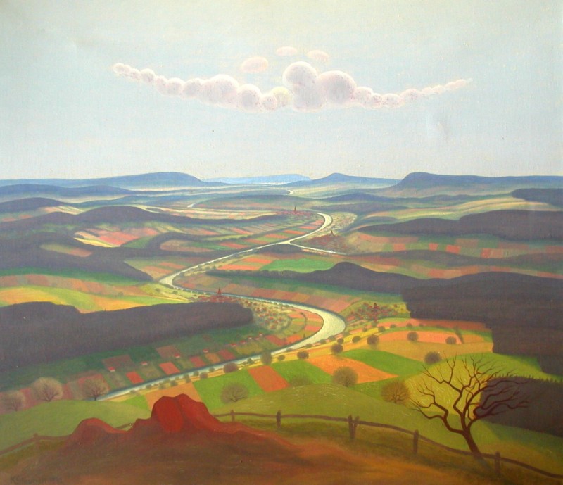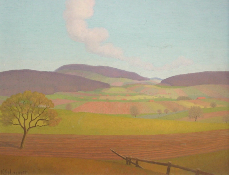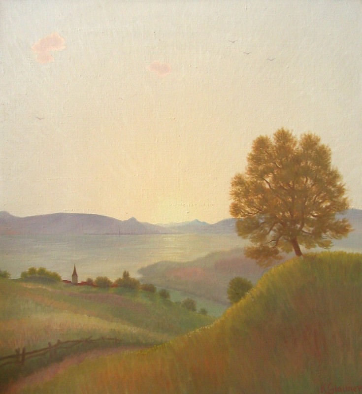 Neben den Porträts waren es die Landschaften und die Kirchen, die Karl Glauners Werk auszeichnen. Das Wallis, der Tessin und Graubünden waren die bevorzugten Orte, aber auch reine Phantasiegebilde und selten seine Heimatstadt Wil mit Umgebung lieferten reichlich Eindrücke.