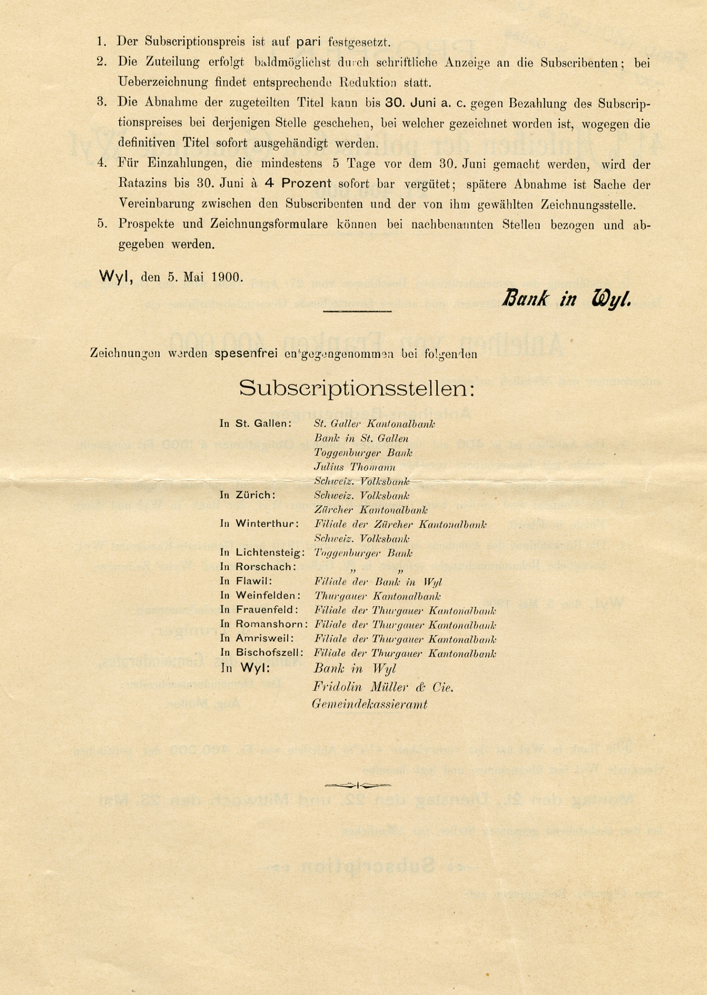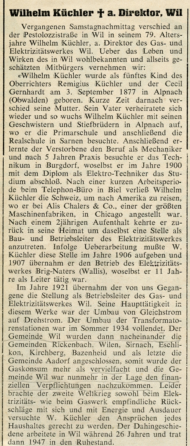 (Gründungs- und Baugeschichte, in: 50 Jahre Elektrizitätswerk Wil 1901-1951; Jubiläumsschrift zum 50-jährigen Bestehen des E.W. Wil, Wil 1951)