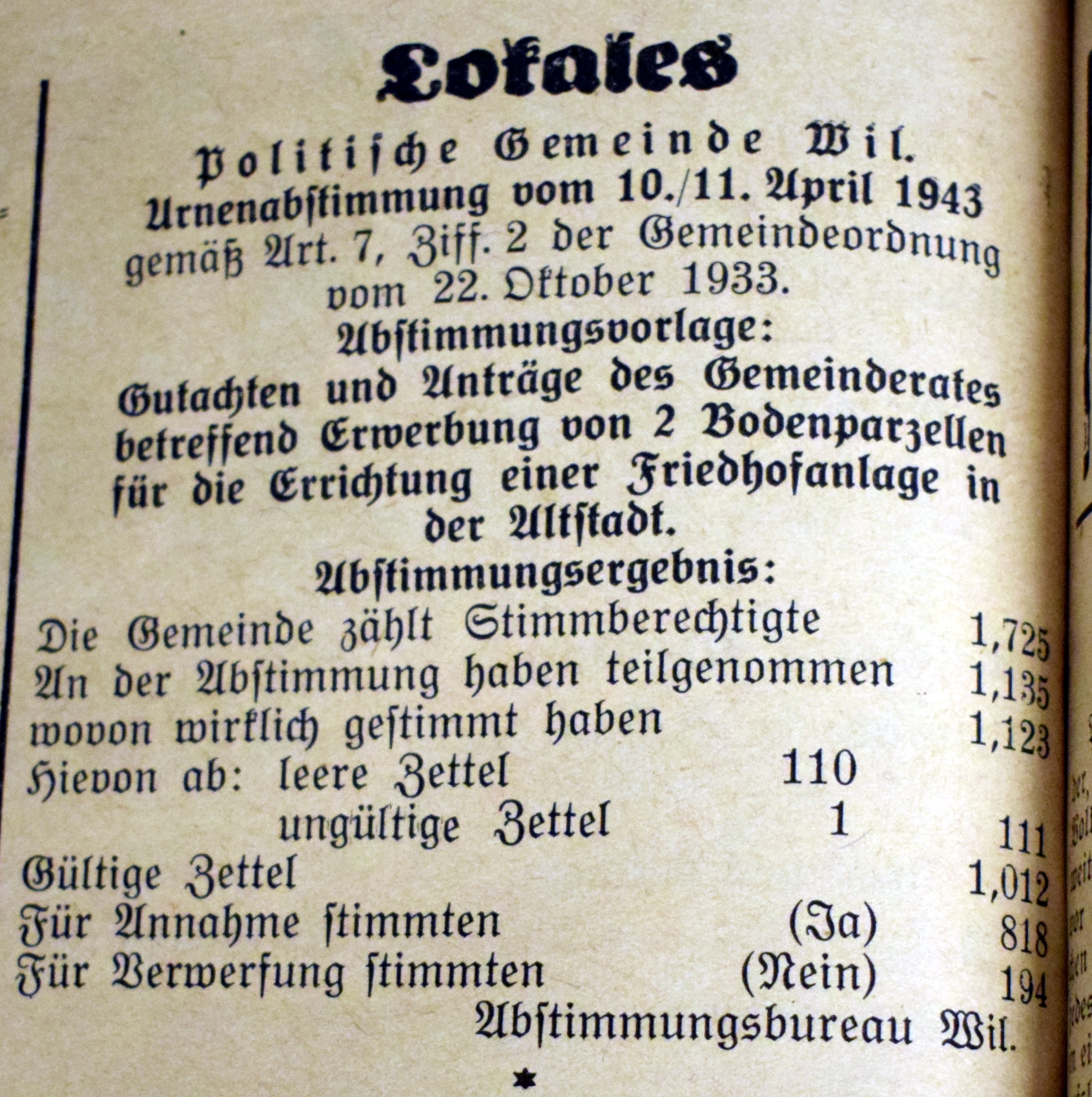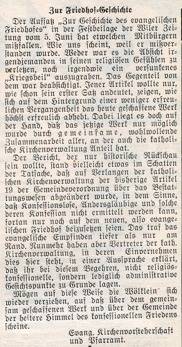 Im Gutachten vom 4. November 1943 für den Landerwerb für einen neuen Friedhof "Altstatt" wurde einleitend begründet: