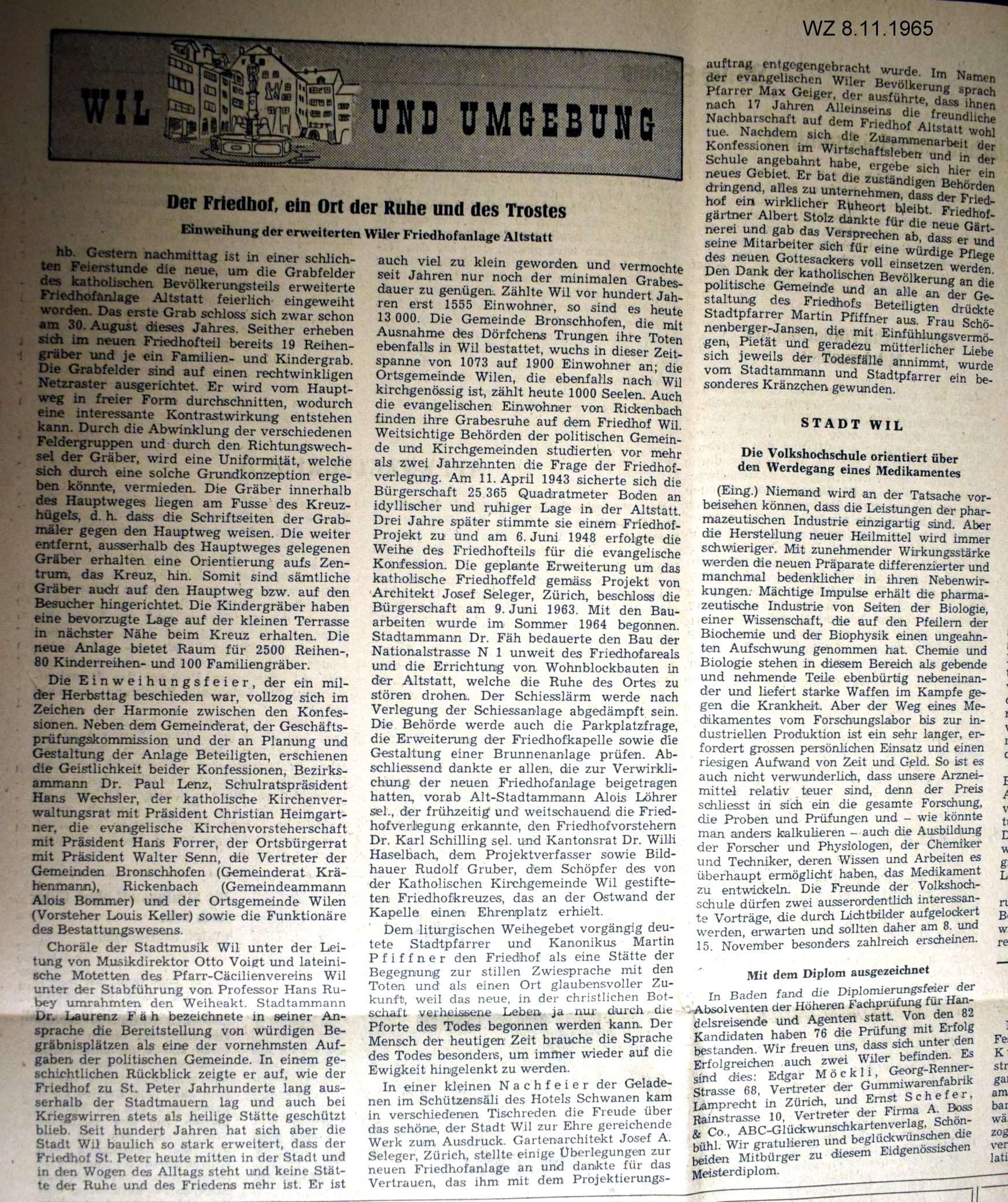 Der Friedhof Altstatt Der Wiler Friedhof trägt den Namen Friedhof Altstatt «Stadt des Friedens» und liegt südöstlich der Stadt am Wilerwald.
