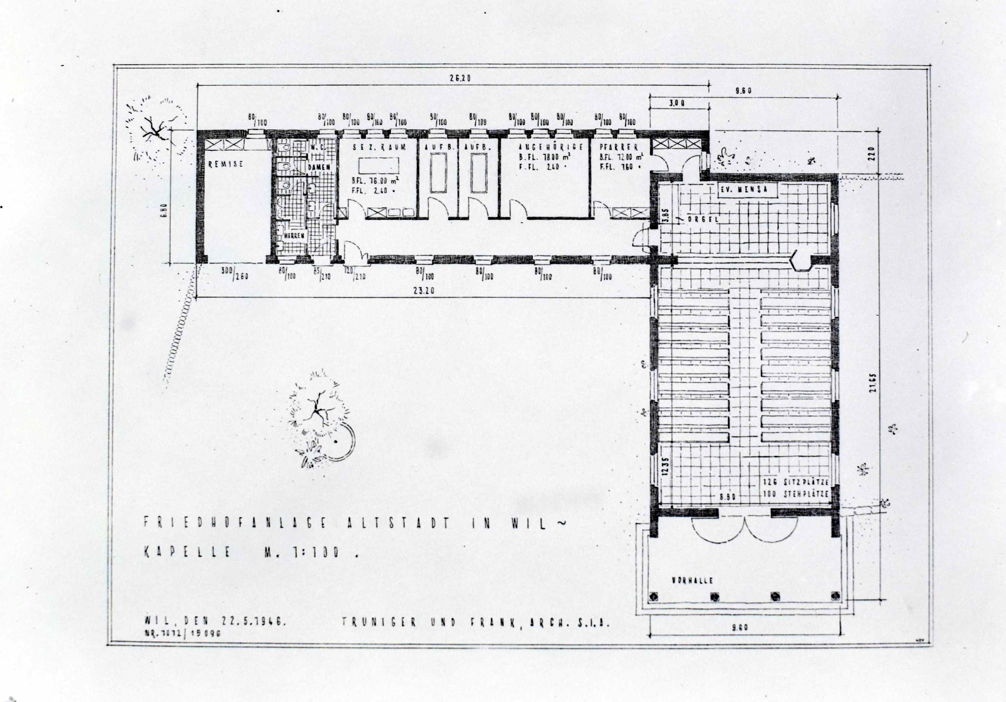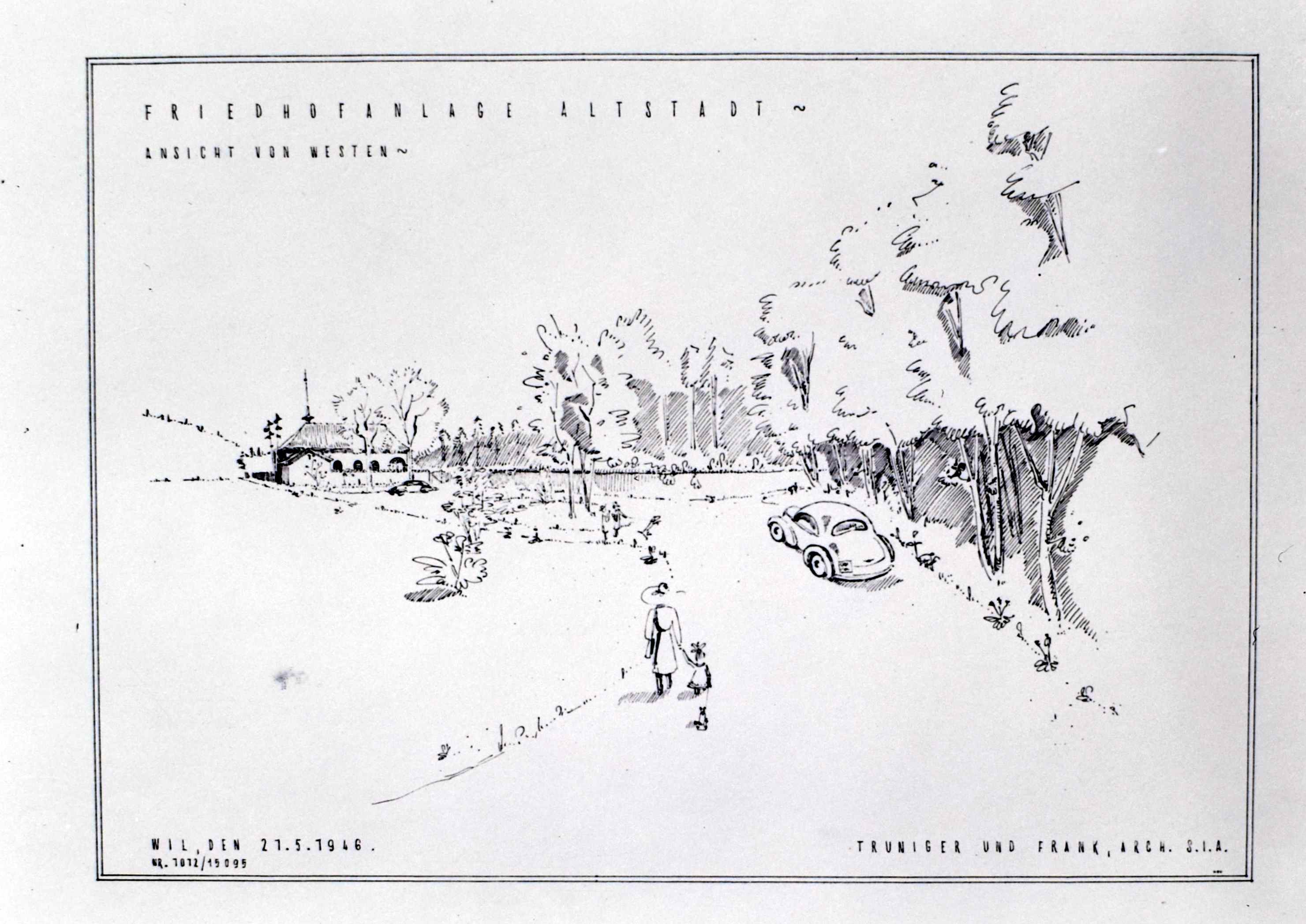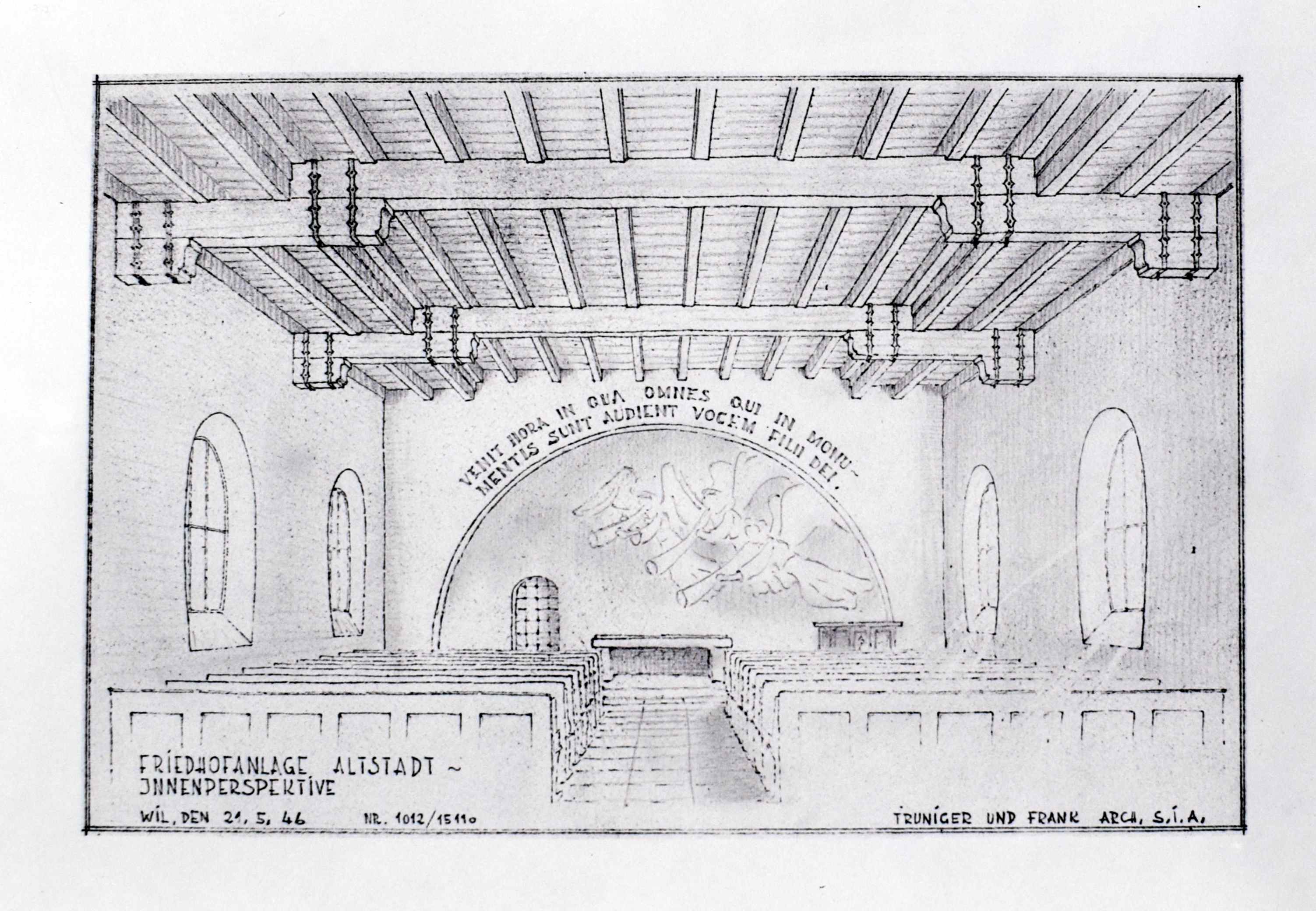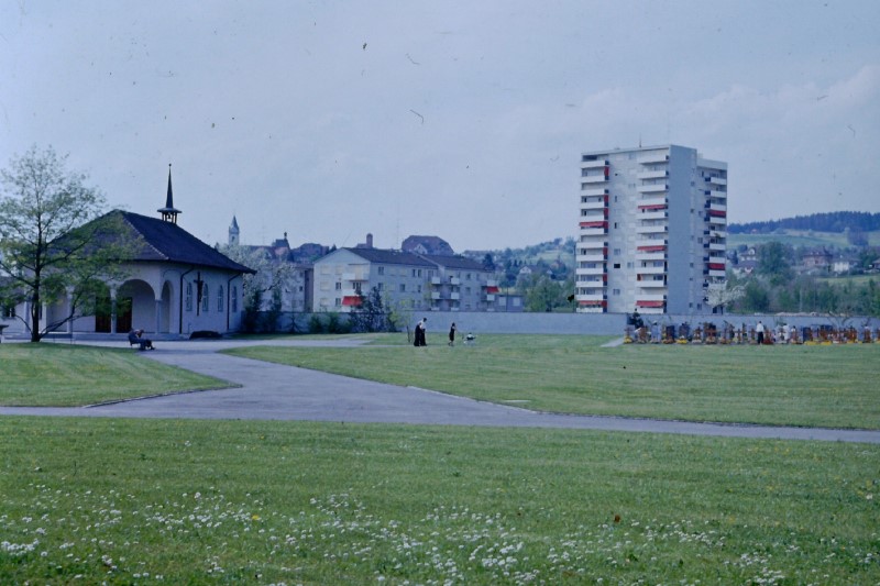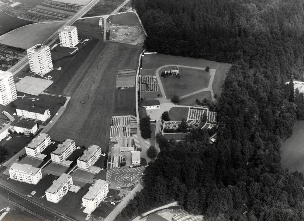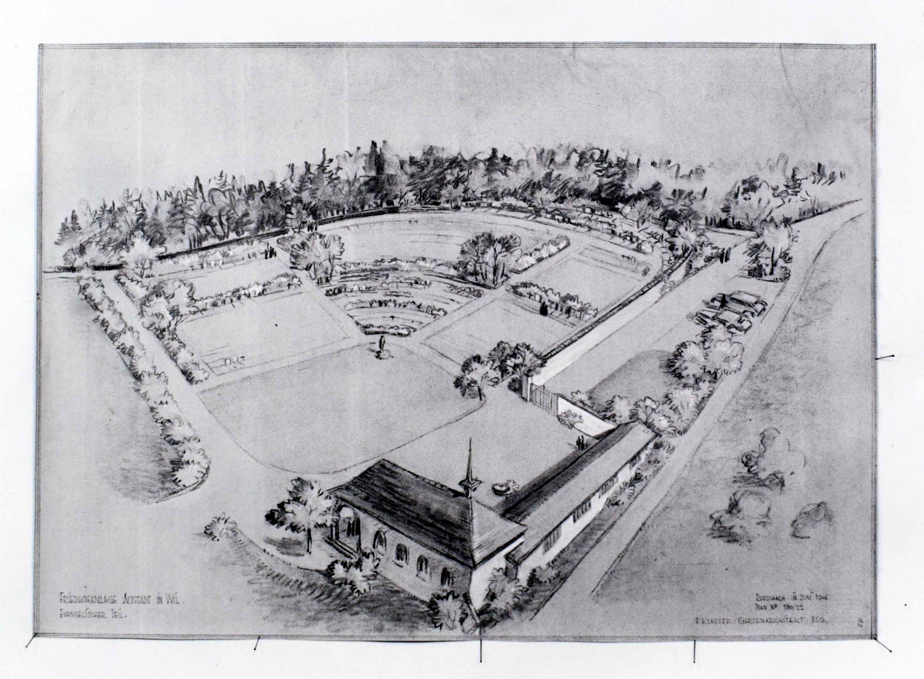 Seit einer Reihe von Jahren ist von den zuständigen Instanzen darauf hingewiesen worden, dass die Platzverhältnisse im Friedhof St. Peter sich zusehends verknappen und deshalb nicht mehr befriedigen. Bei der Räumung einiger Grabfelder konnte nur noch die minimale Grabdauer von 20 Jahren eingehalten werden, was oft als stossend empfunden wurde. Angesichts dieser Tatsachen hat der Gemeinderat schon im Frühjahr 1941 die hiesigen Archtekten Truniger und Zuber beauftragt, generelle Projekte über eine eventuelle Friedhof-Verlegung in die Altstadt auszuarbeiten. "