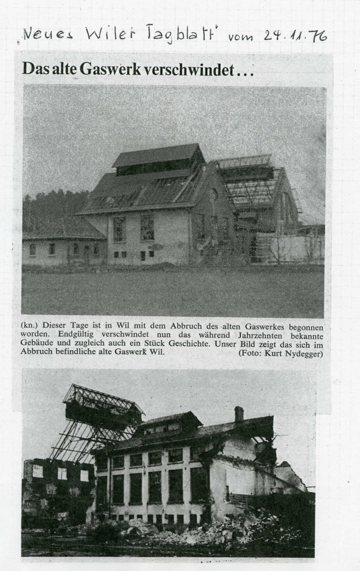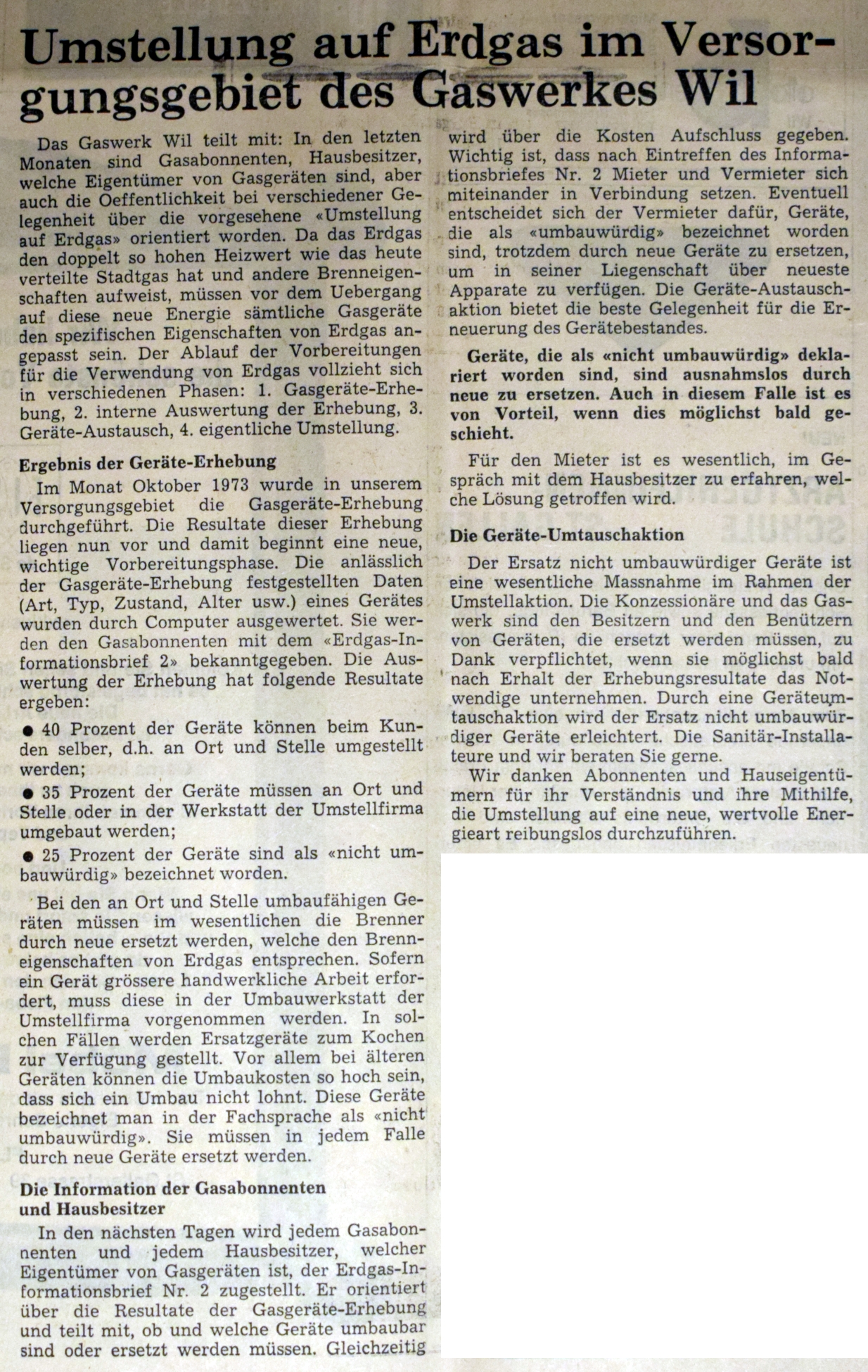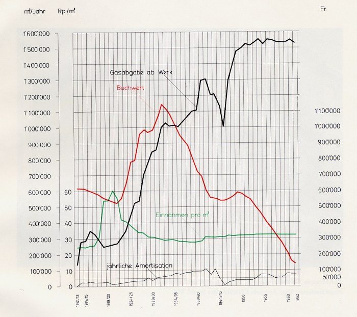 (Darstellungen: 50 Jahre Gaswerk Wil 1912-1962; Jubiläumsschrift zum 50-jährigen Bestehen des Gaswerkes Wil, Wil 1963, homepage der Technischen Betriebe Wil). www.tbwil.ch/erdgasversorgung