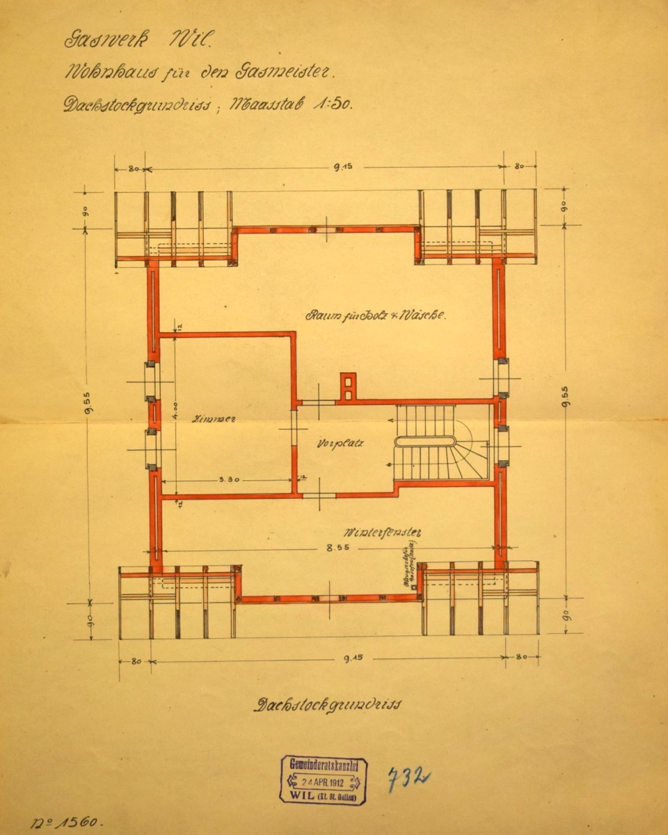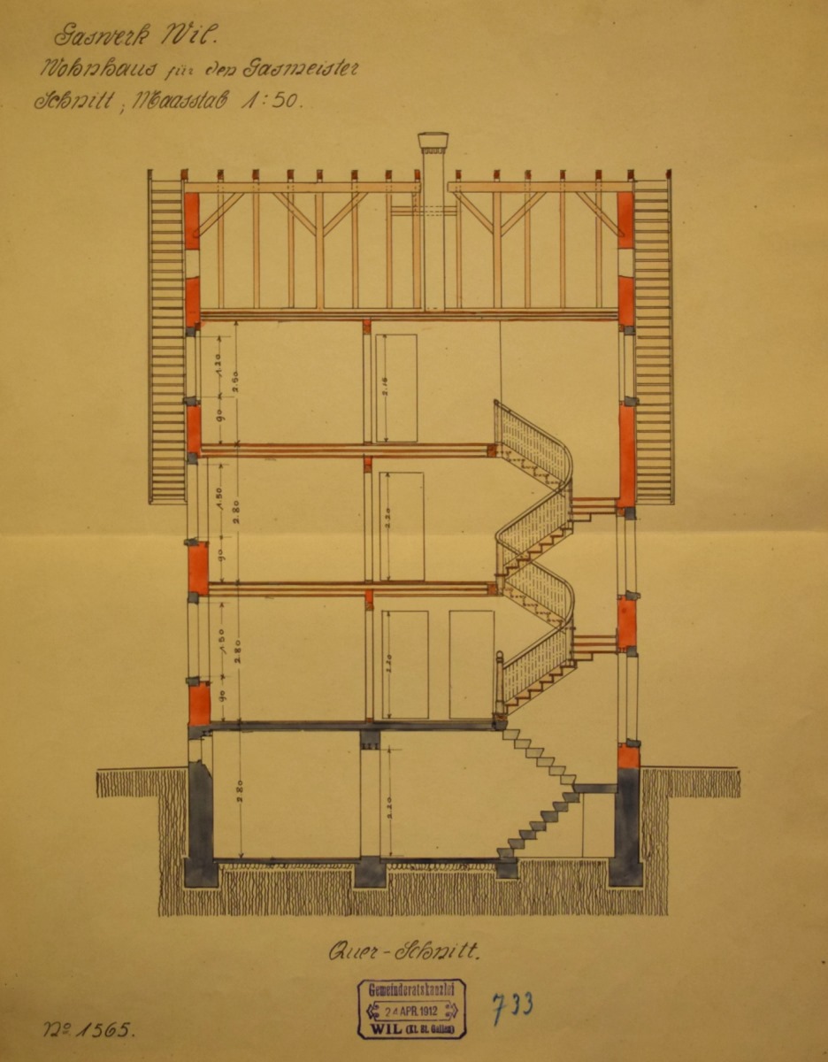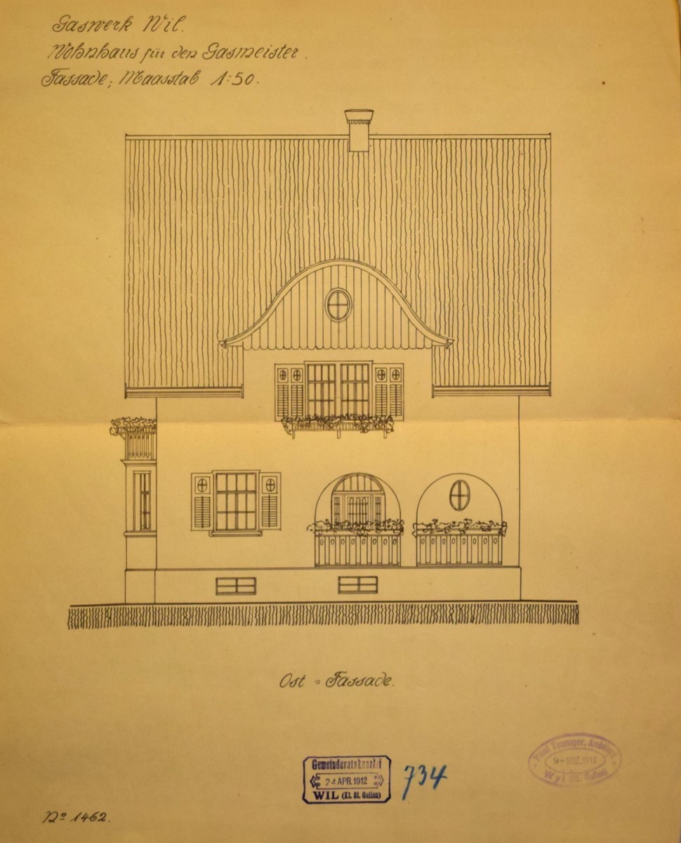 Das von dem bekannten Gasfachmann Herrn Direktor Burkhard, Luzern, ausgearbeitete Projekt der Erstellung eines Gaswerkes im Bergholz fand hierauf an der Versammlung vom 26. November 1911 die einhellige Zustimmung der Bürger, wobei gleichzeitig auch der hiefür notwendige Kredit von Fr. 540'000.- erteilt wurde. Mit der Projektierung und Bauleitung für die Hochbauten wurde Architekt Paul Truniger, Wil, betraut.