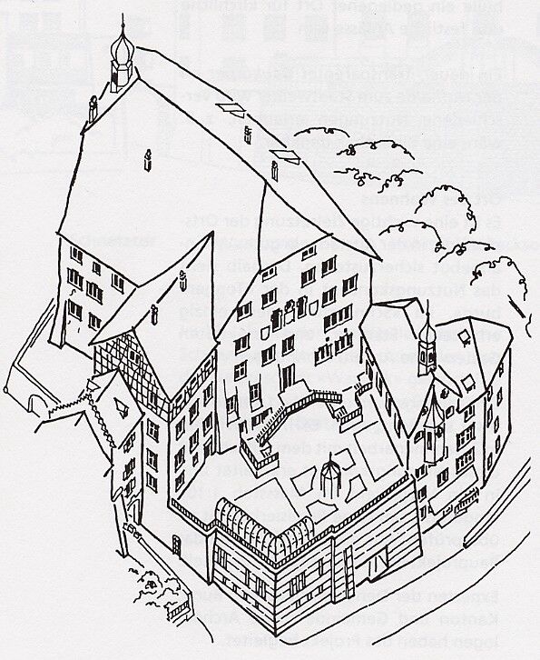 Bereits unter den Herren von Toggenburg, den Gründern der Stadt Wil, erhob sich an dieser dominierenden Lage auf dem eiszeitlichen Wallberg ein gemauertes Haus, vielleicht auch ein wehrhafter Wohnturm, den wir uns als den eigentlichen Ausgangspunkt der späteren Stadtanlage zu denken haben. Urkundlich wird der Hof erstmals 1302 erwähnt, als Wil bereits äbtische Stadt war und eben nach dem alles vernichtenden Brand von 1292 wieder aufgebaut wurde.