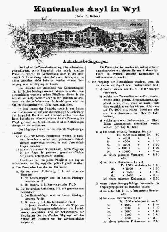Die kantonalen Psychiatrischen Dienste Sektor Nord Der Grosse Rat des Kantons St. Gallen hatte um 1884 beschlossen, ein zweites "Asyl für Unheilbare und Altersschwache" neben der bestehenden Anstalt in St. Pirminsberg einzurichten. 1886 wurden die Anforderungen für den Standort formuliert: