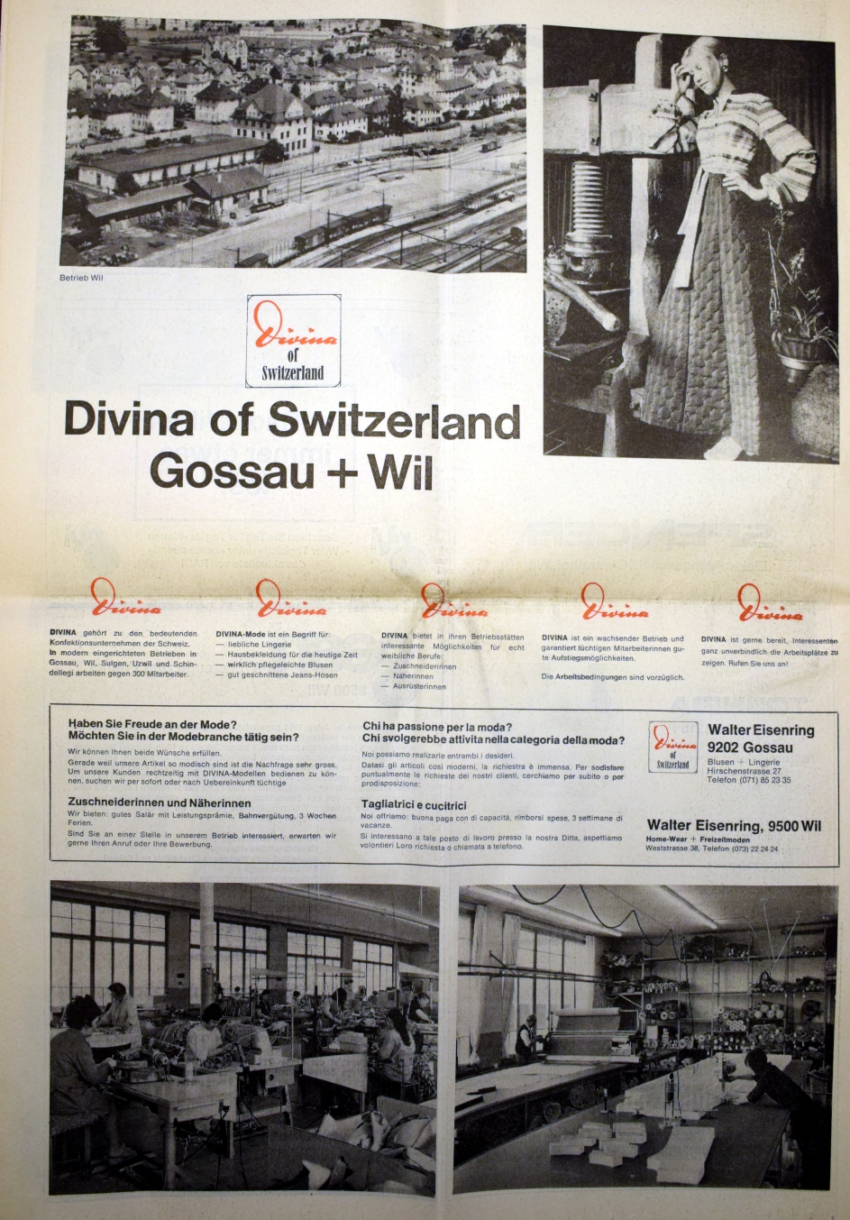 Wohn- und Geschäftshaus mit Fabrikanbau. Zeittypische Gebäudegruppe von 1909 nach Plänen des Wiler Architekten Paul Truniger (1878-1946). Bauherr war Thomas Eisenring, der Gründer der Stickereifabrik. 1926 geht aus dem Stickereibetrieb die Glanzstoff AG, später die Divina AG hervor. Geschütztes Kulturobjekt.