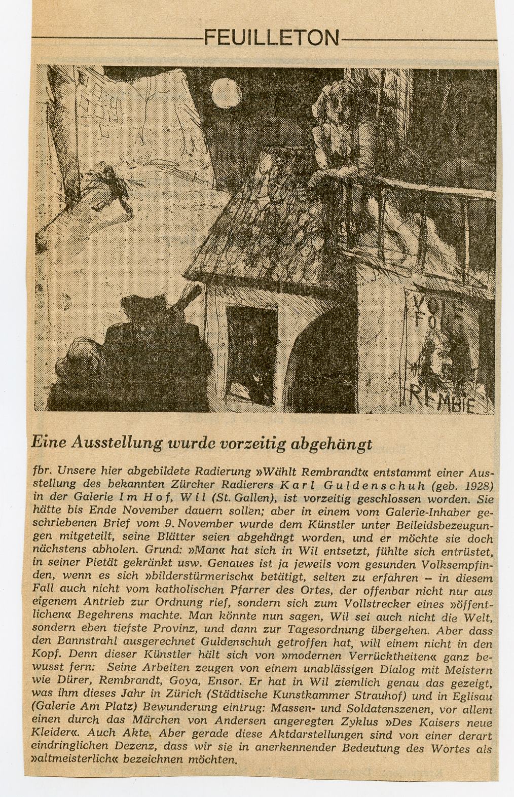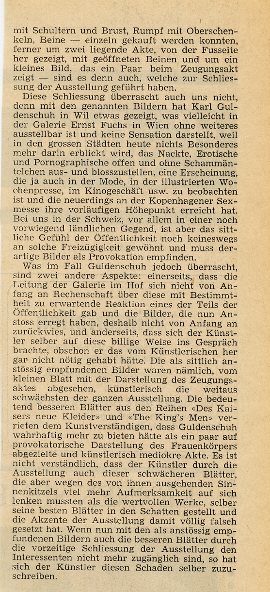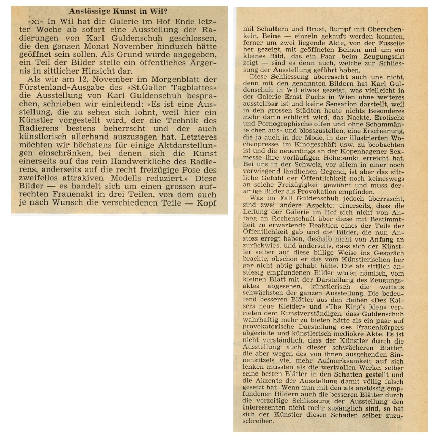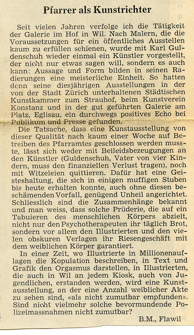Im Hof war die Galerie "im Hof" etabliert. 1969 löste eine Ausstellung des Zürcher Radierers Karl Guldenschuh eine Kontroverse aus. Auf Betreiben des Stadtpfarrers wurden seine Bilder, darunter eben Aktzeichungen, abgehängt.