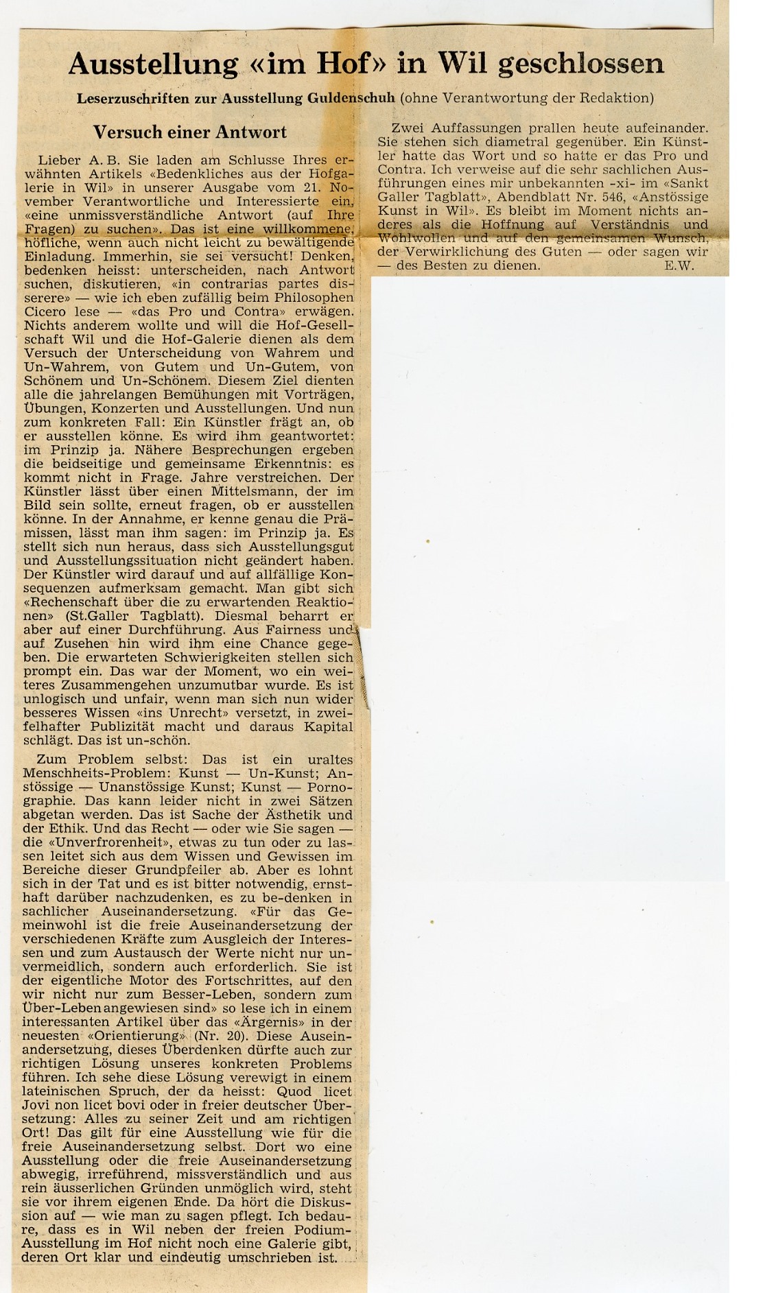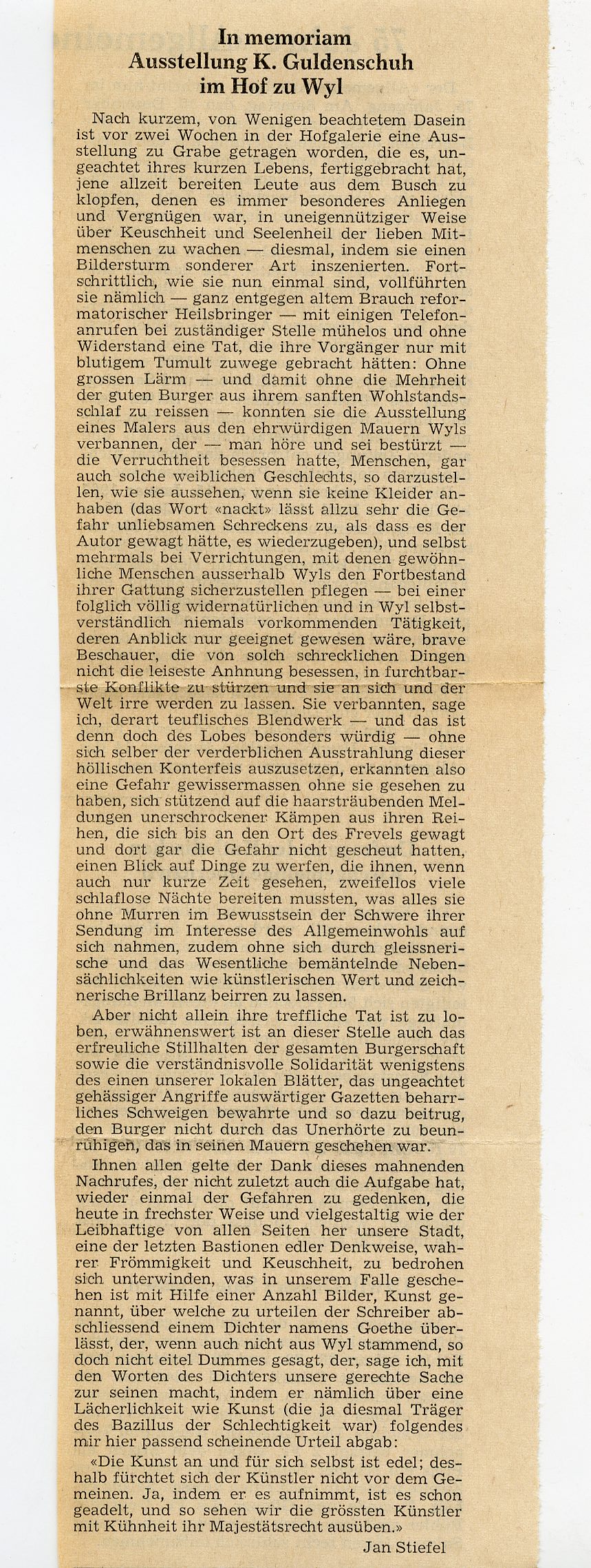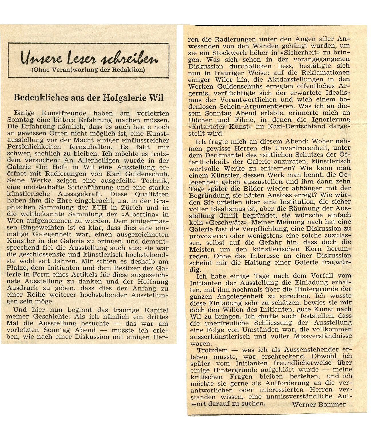 Im Hof war die Galerie "im Hof" etabliert. 1969 löste eine Ausstellung des Zürcher Radierers Karl Guldenschuh eine Kontroverse aus. Auf Betreiben des Stadtpfarrers wurden seine Bilder, darunter eben Aktzeichungen, abgehängt.