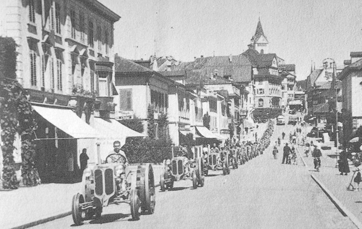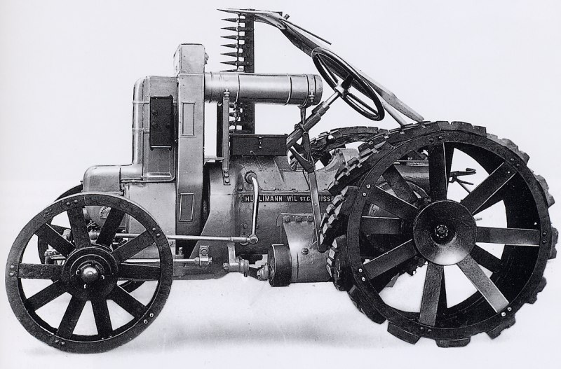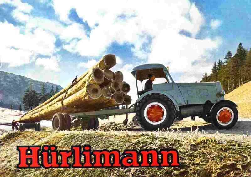 Die Geschichte der heute noch sehr erfolreichen Hürlimann Traktoren begann , als der Gründer Hans Hürlimann (18.08.1901 - 19.11.1977) Wege und Möglichkeiten suchte, auch für kleinere Landwirtschaftsbetriebe erschwingliche Traktoren herzustellen. Diese Kleintraktoren sollten mit einer vielseitig verwendbaren Bereifung nicht nur als Zugmaschine dienen, sondern sollten auch am Hang mit Mähapparaten eingesetzt werden können. In Nacht- und Sonntagsarbeit enstand 1929 so der erste Hürlimann-Traktor. Als idealer Traktor für die Schweizer Bauern fand der Hürlimann 1K8 sehr grossen Anklang und wurde dadurch in grosser Stückzahl gebaut. Er verfügte über eine Leistung von 8 PS und wurde dazumal zum Preis von SFr 4'750.- verkauft Während des Zweiten Weltkrieges wurden die Hürlimann Dieseltraktoren auf Holzgasberieb umgerüstet. Ohne Abhängigkeit ausländlischer Rohstoffe konnten die Hürlimann-Traktoren ihre Arbeit weiterhin verrichten. Weitere Erfindungen folgten. Um der Kautschuk-Knappheit zu entgehen, entwickelte Hans Hürlimann ein Rad, welches anstelle der Reifen ein Gusseisenring als Profilersatz besass. Die fehlenden Federungeigenschaften wurden durch Schraubenfedern im Radinnern kompensiert.