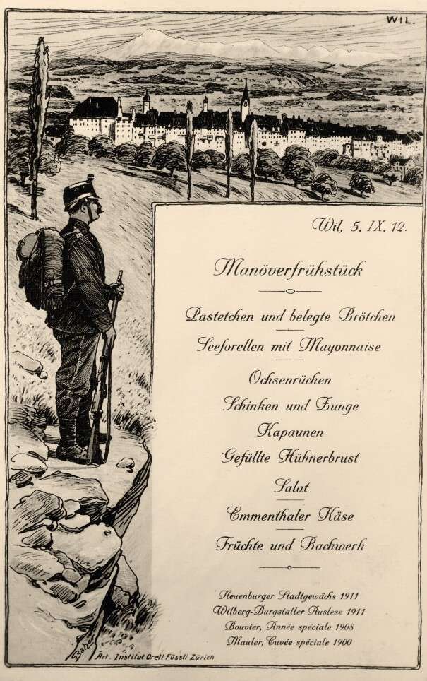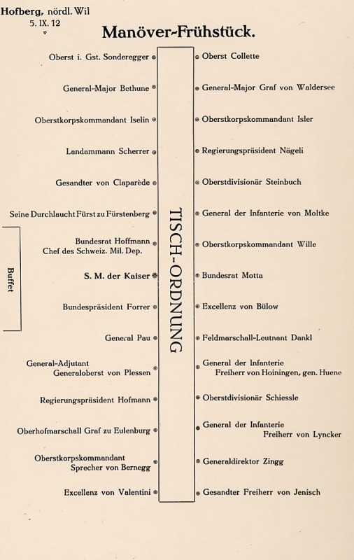 Im Rahmen der in der gesamten Schweiz abgehaltenen Manöver besuchte der deutsche Kaiser Wilhelm II. auch unsere Gegend. In Wil und in Kirchberg schaute er den Manövern zu. Am 5. September 1912 war er in Wil und nahm das Manöverfrühstück auf dem Hofberg ein, bedient von Wiler Frauen in Trachten.