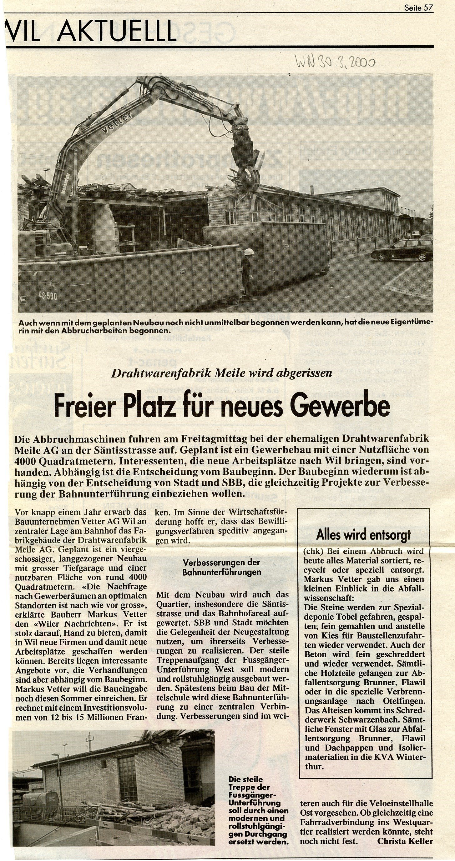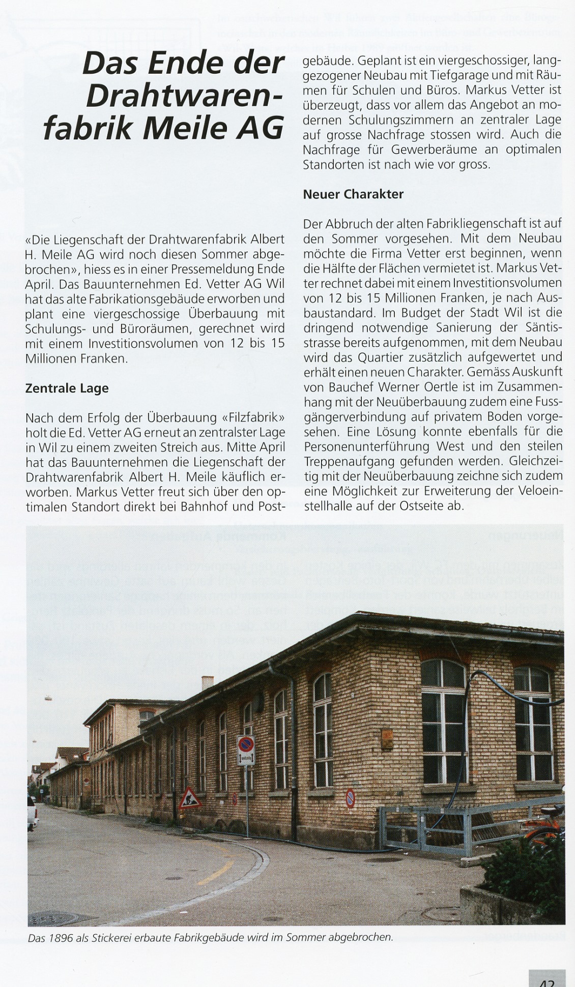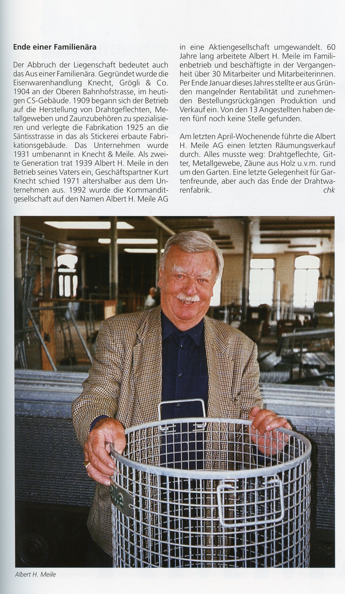 1925 zog die Firma Knecht und Meile AG von der Oberen Bahnhofstrasse an die Säntisstrasse, wo sie die Fabrikräume des ersten, 1896 erbauten Gebäudes der Stickerei Reichenbach & Co., übernahm. Der Betrieb wurde 1999 aufgegeben und das Gebäude abgebrochen und durch den Neubau Railcenter ersetzt.