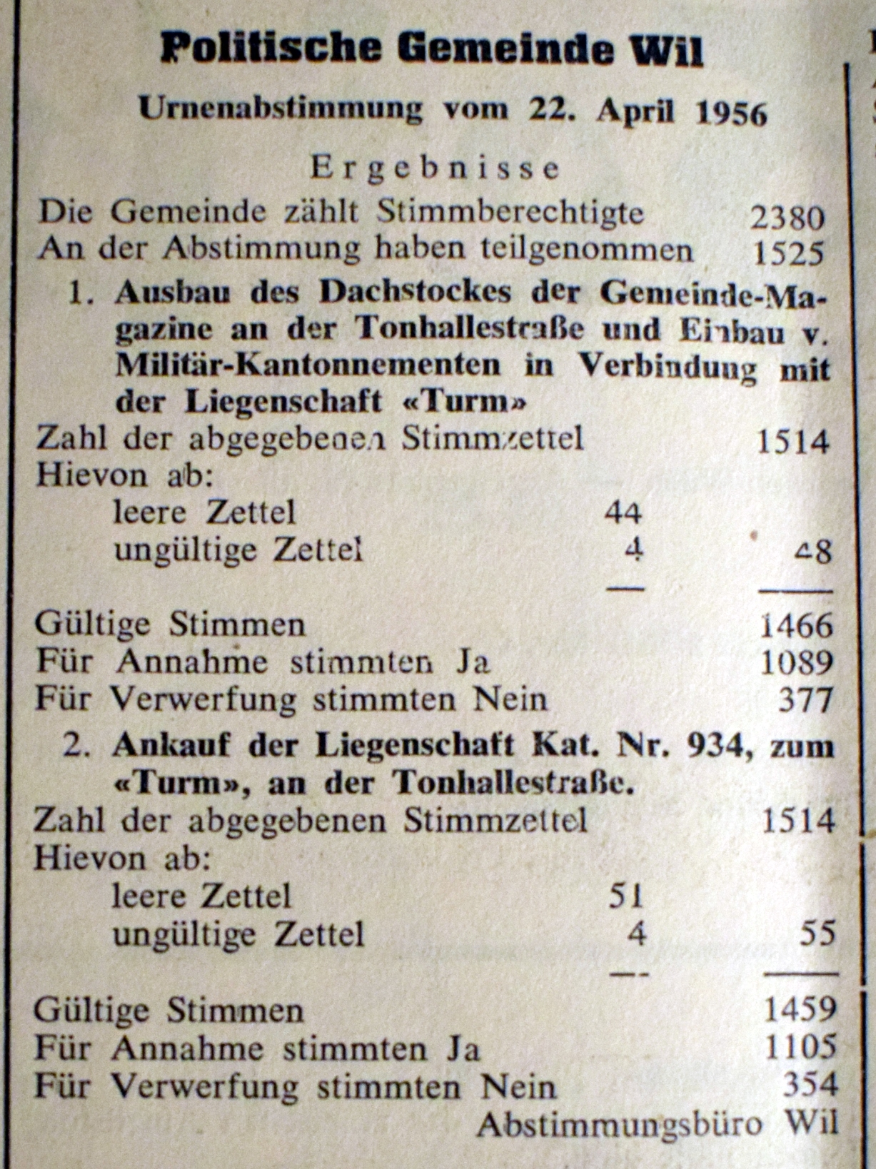 Gemeindeabstimmungen 1951 - 1960