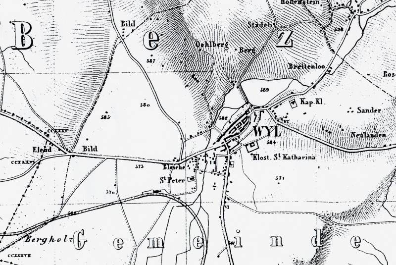 " Dass die Erstellung einer Eisenbahn von Wyl über St. Gallen nach Rorschach zum Zwecke der Unmöglichmachung einer ähnlichen Linie von Frauenfeld aus nach Romanshorn und zum Zwecke, den Kantonen St. Gallen und Appenzell ihre bestehenden Verkehrs- Gewerbs - und Industrieverhältnisse zu retten, gerade so gut für Wyl selbst eine Lebensfrage ist, als für die Kantone St. Gallen und Appenzell überhaupt dass speziell die Erhaltung des gegenwärtigen Verkehrs von Wyl, die Erhaltung seines Marktes, seiner Industrie, seiner Bevölkerung, seiner Verdienst- und Vermögensverhältnisse entscheidend davon abhängt, ob dasselbe an der Verkehrslinie bleibe. "